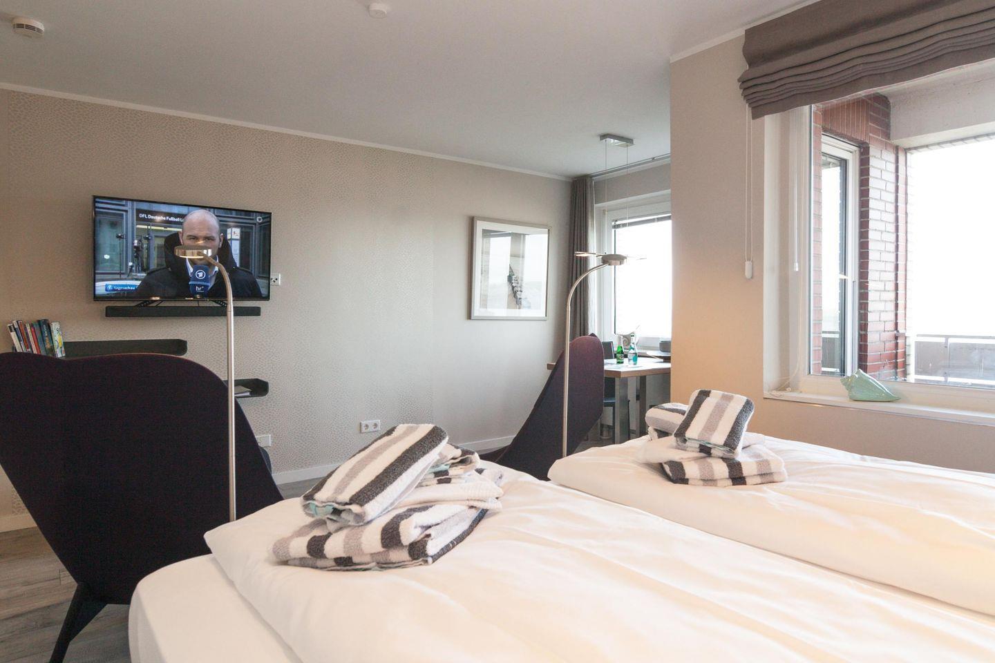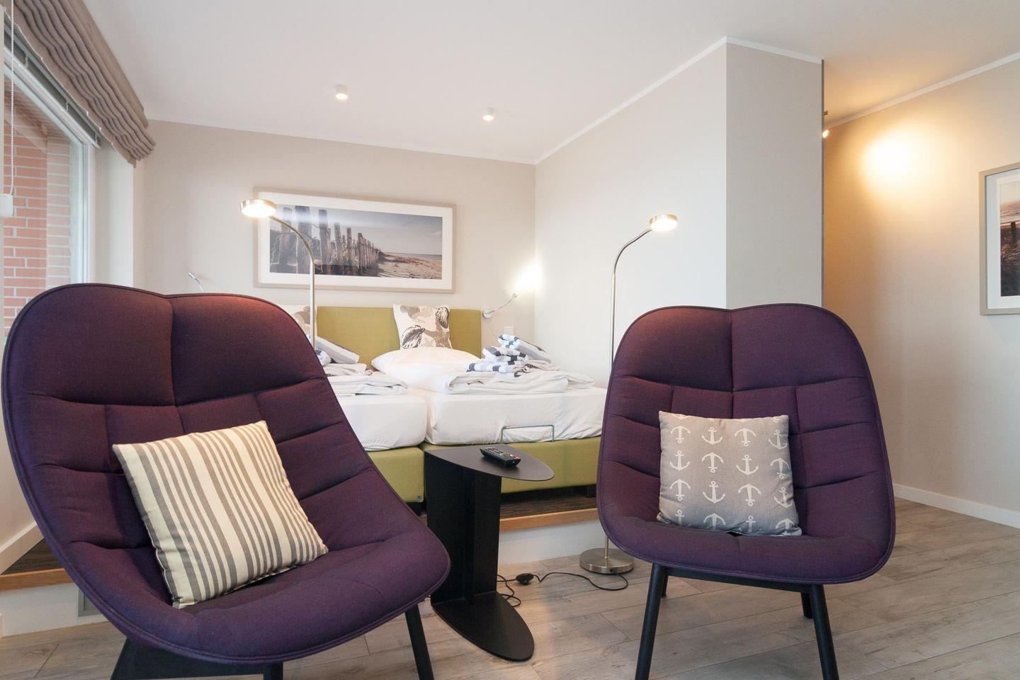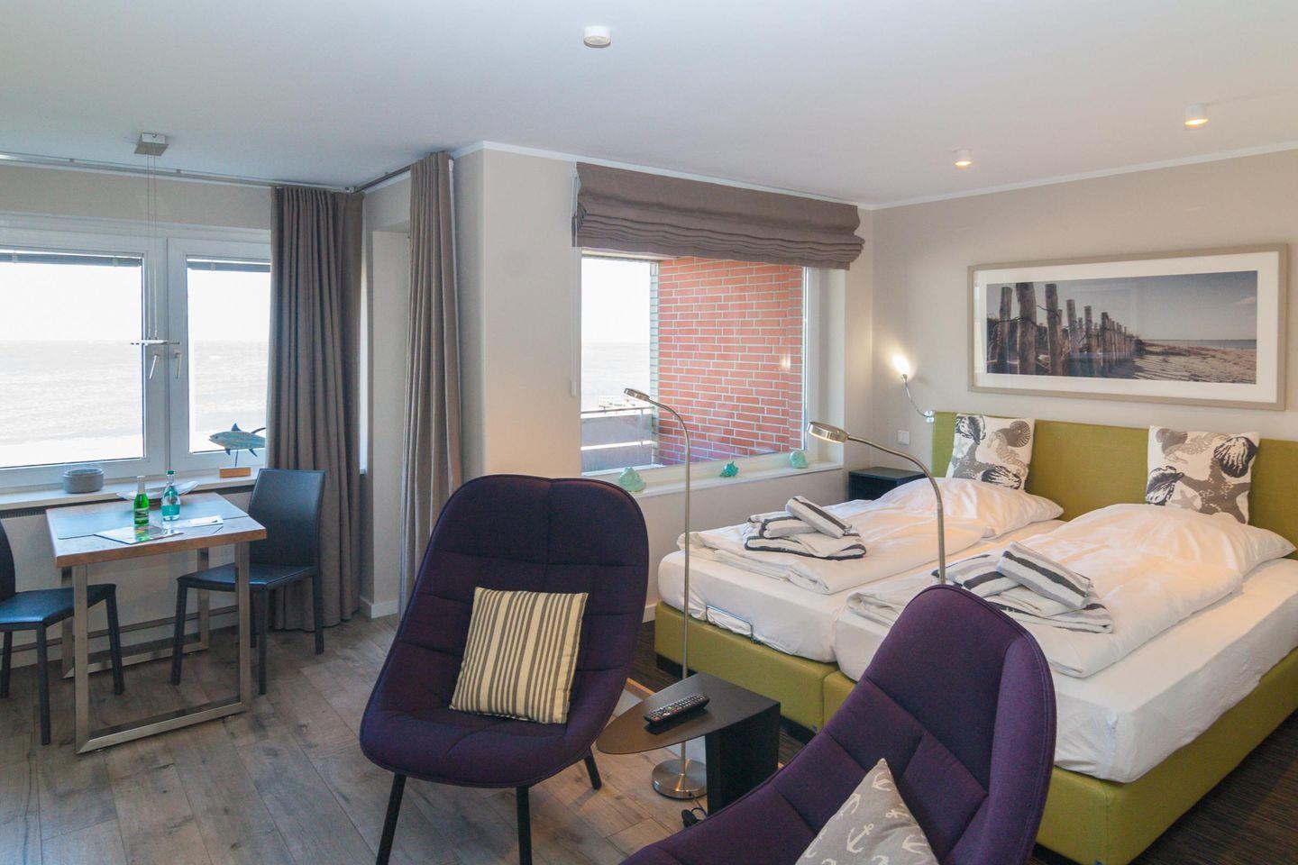Diese Ferienwohnung mit Meerblick wurde in 2018 komplett renoviert und ist für 2 Personen ausgestattet. Sie verfügt im Wohnbereich mit einem Doppelbett, welches auf ein Podest gestellt wurde, damit man auch aus dem Bett einen traumhaften Meerblick hat. Vom Wohnzimmer aus haben Sie einen fantastischen Blick auf die Ostseite, das Wattenmeer, von Hörnum. Zur Wohnung gehört ein Duschbad und eine sep. kleine Küche, die mit allem ausgestattet ist, was man im Urlaub braucht.