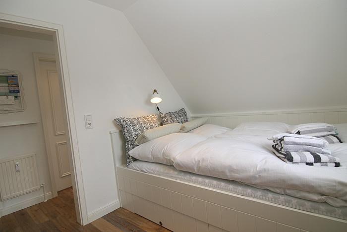 Unsere "Strandperle" ist eine mit viel Liebe eingerichtete kleine 2 Zimmer DG - Wohnung, die in 2021 renoviert wurde. Hier fühlen sich am liebsten 2 Personen wohl. Es sind zwei Schlafmöglichkeiten vorhanden. Vom Flurbereich gelangen Sie in das kuschlige Kojenzimmer. In dem im Sylter-Style eingebauten Kojenbett (140x200 cm) können Sie bequem schlafen oder einfach nur mit Blick auf den Leuchtturm entspannen. Gegenüber ist das helle, moderne Duschbad. Vom kleinen Flur mit Garderobe gelangt man in den Wohn-/Ess-/Schlafbereich (160x200 cm) mit Holztreppe und Empore. In diesem befindet sich das gemütliche Sofa - ebenfalls mit Leuchtturmblick. Der Wohnbereich bietet freies WLAN, Smart - TV und ein Radio (DAB Plus und Bluetooth) Der Esstisch für Zwei ist ist leicht auf vier Personen erweiterbar. Eine geschmackvolle, kleine Einbauküche bietet alles, was Sie für Ihren Urlaub benötigen: Induktionskochfeld mit vier Kochstellen, Backofen, Kühl-Gefrierkombination, Mikrowelle, Senseo-Kaffeemaschine, Toaster und Geschirrspülmaschine. Rundum eine Top-Urlaubsadresse und Ausgangspunkt für einen unvergesslichen Urlaub. Übrigens für Ihr Auto gibt’s natürlich einen kostenfreien Stellplatz, aber auch mit dem Bus ist die Wohnung hervorragend erreichbar.