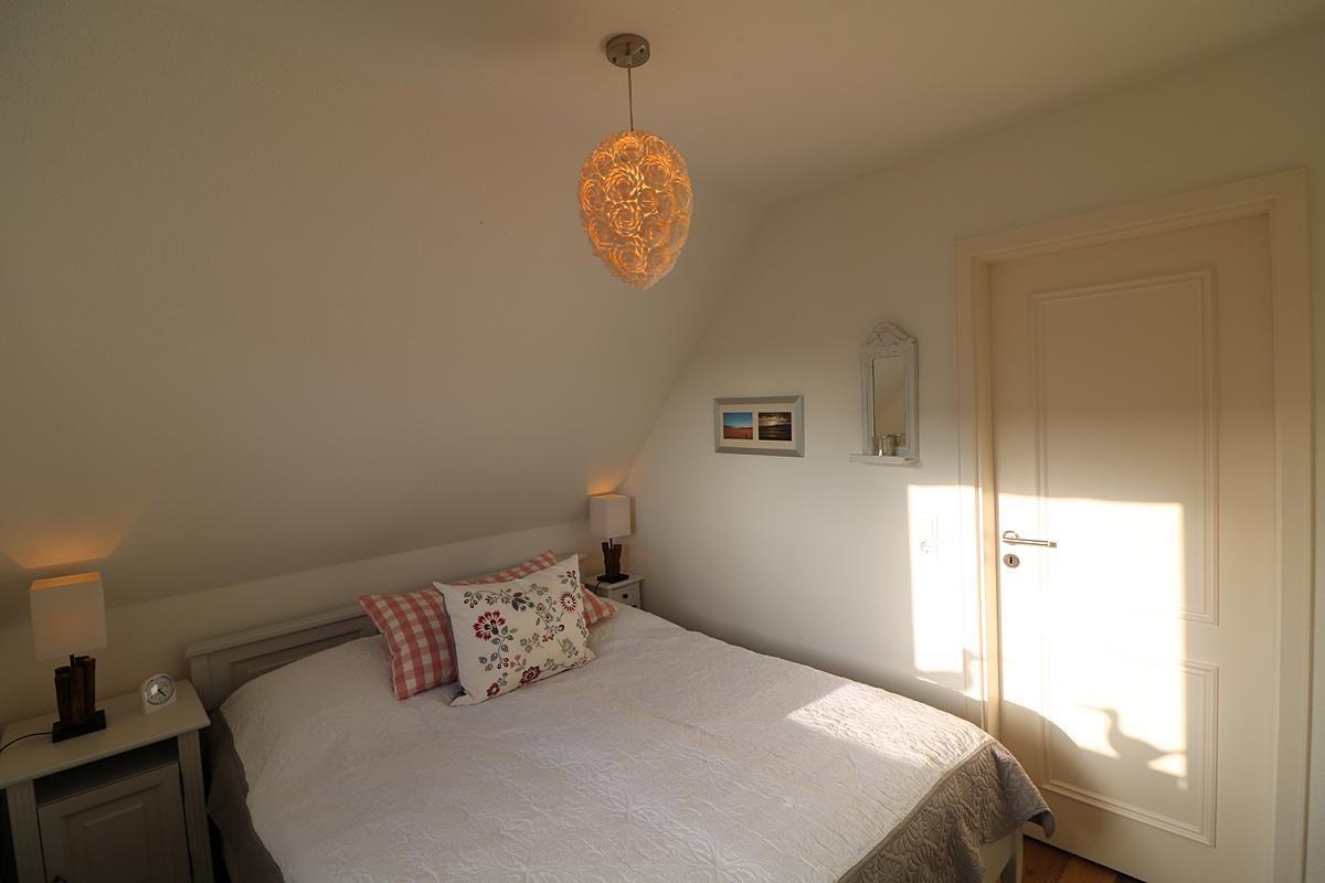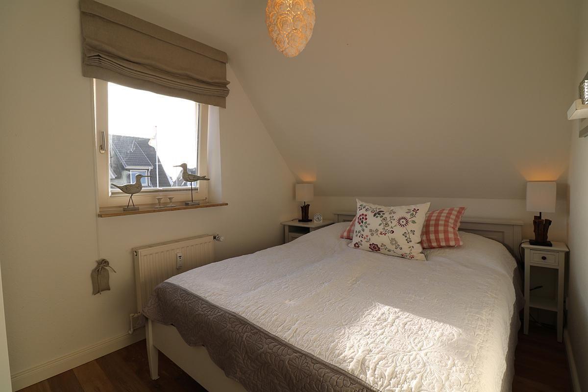 In dieser Ferien-Maisonette im Herzen von Hörnum ist an alles gedacht. Vom Flurbereich gelangen Sie in das Schlafzimmer mit Doppelbett kuschelig unter der Dachschräge.