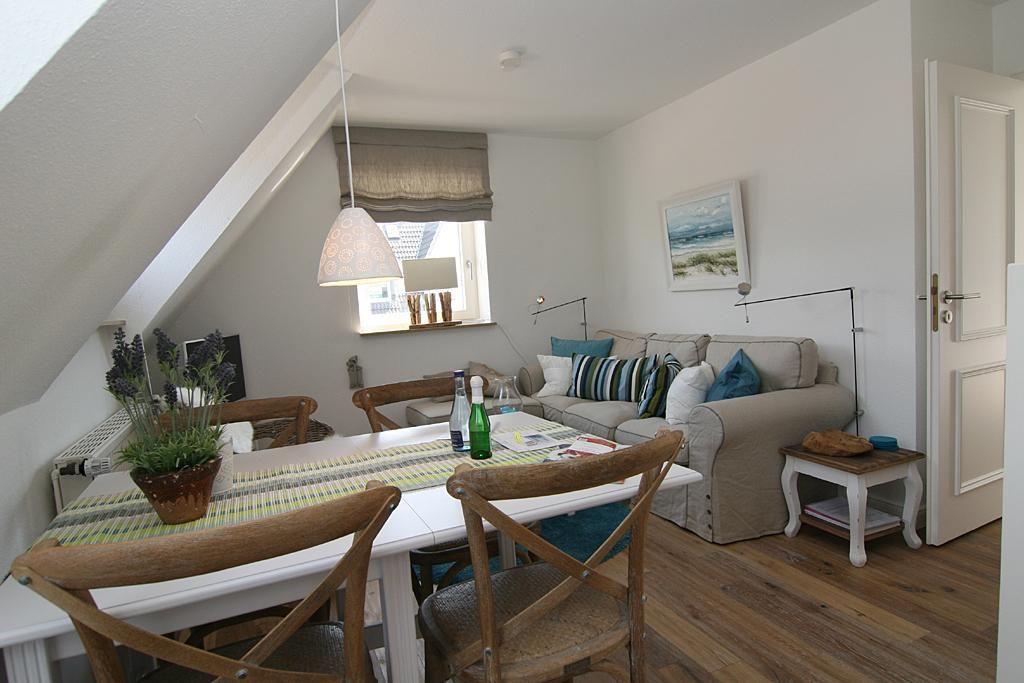 Diese erst in 2015 mit viel Liebe eingerichtete Ferienwohnung auf 2 Ebenen mit kleiner Dachterrasse, bietet Komfort für 4 Sylt-Liebhaber.