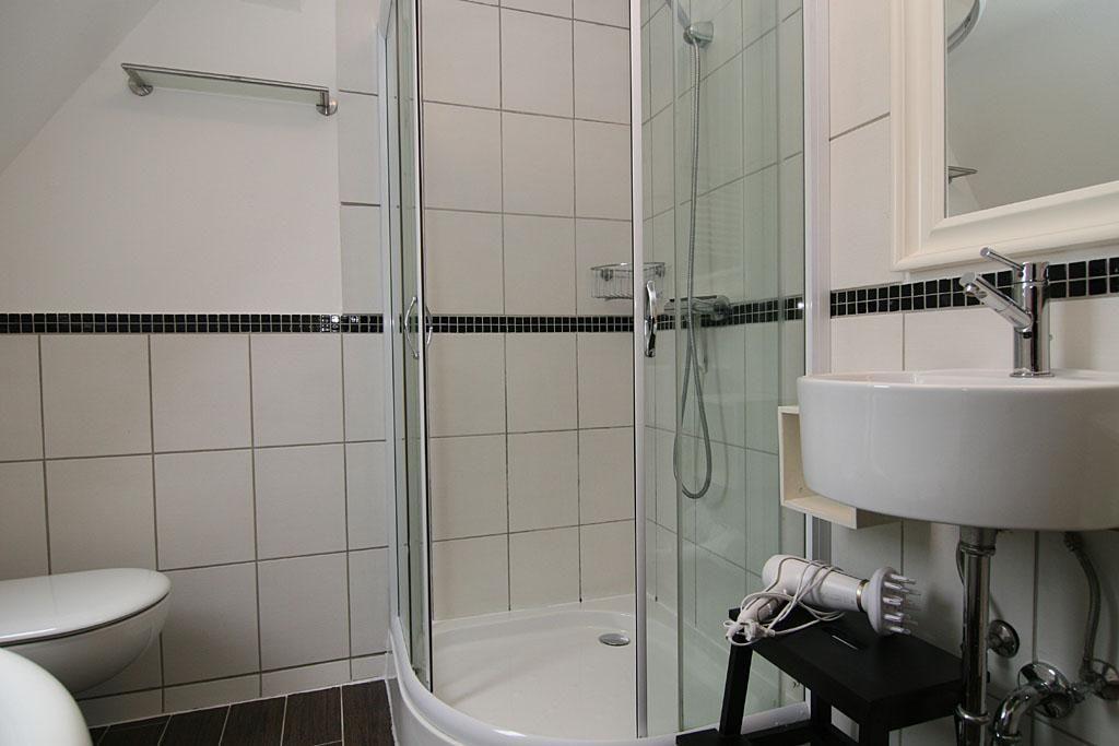 Das Haus verfügt über insgesamt drei Schlafzimmer. Davon sind zwei Schlafzimmer mit Doppelbett (1,80m x 2,00m) ausgestattet und eines mit einem Bett 1,40m x 2,00m für eine einzelne Person. Im Obergeschoss befindet sich auch das Duschbad.