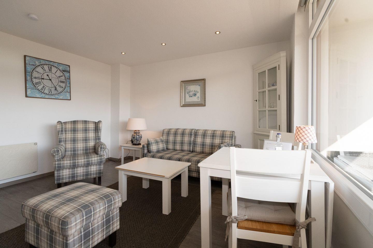 Besonders hervorzuheben ist der eigene große Balkon, auf dem Sie die frische Nordseeluft genießen und die Umgebungskulisse bewundern können. Genauso zum Frühstücken ein idealer Ort.