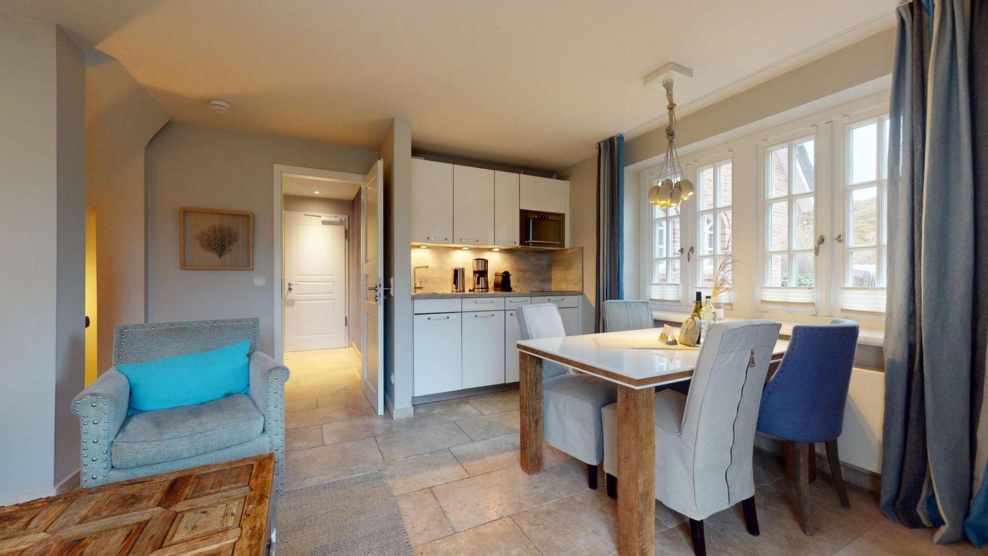 Moderne 3-Zimmer-Ferienwohnung in Hörnum mit Terrasse, Strandkorb und hundefreundlicher Atmosphäre.