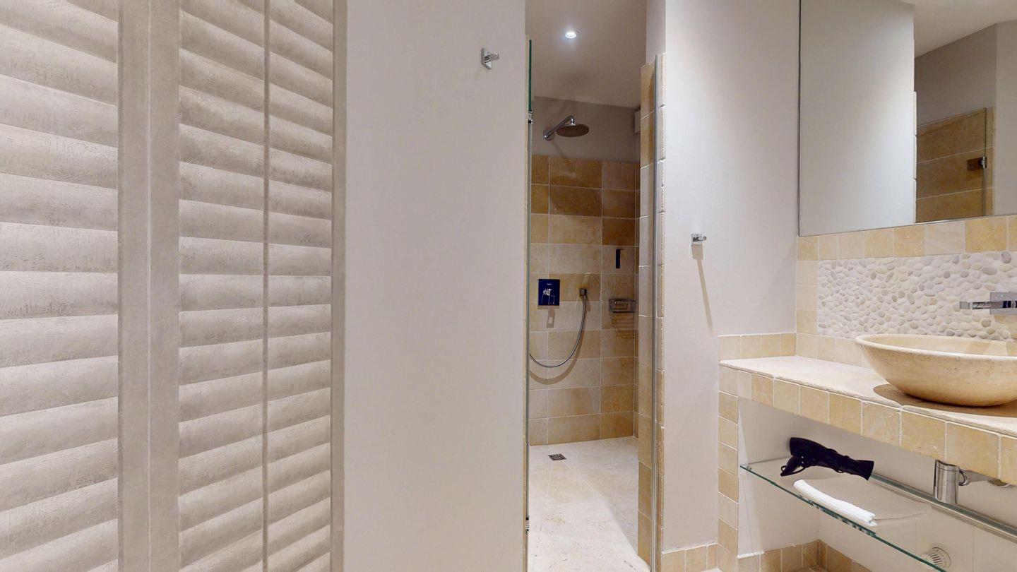 Ebenfalls auf dieser Ebene liegt das moderne Badezimmer mit großzügiger Regendusche.