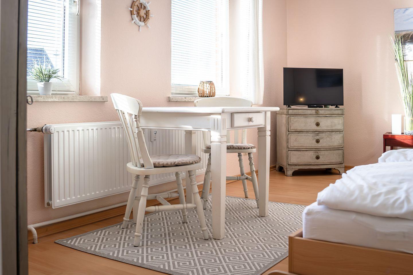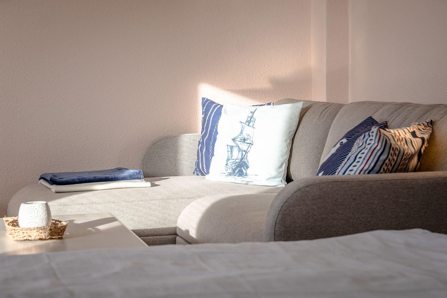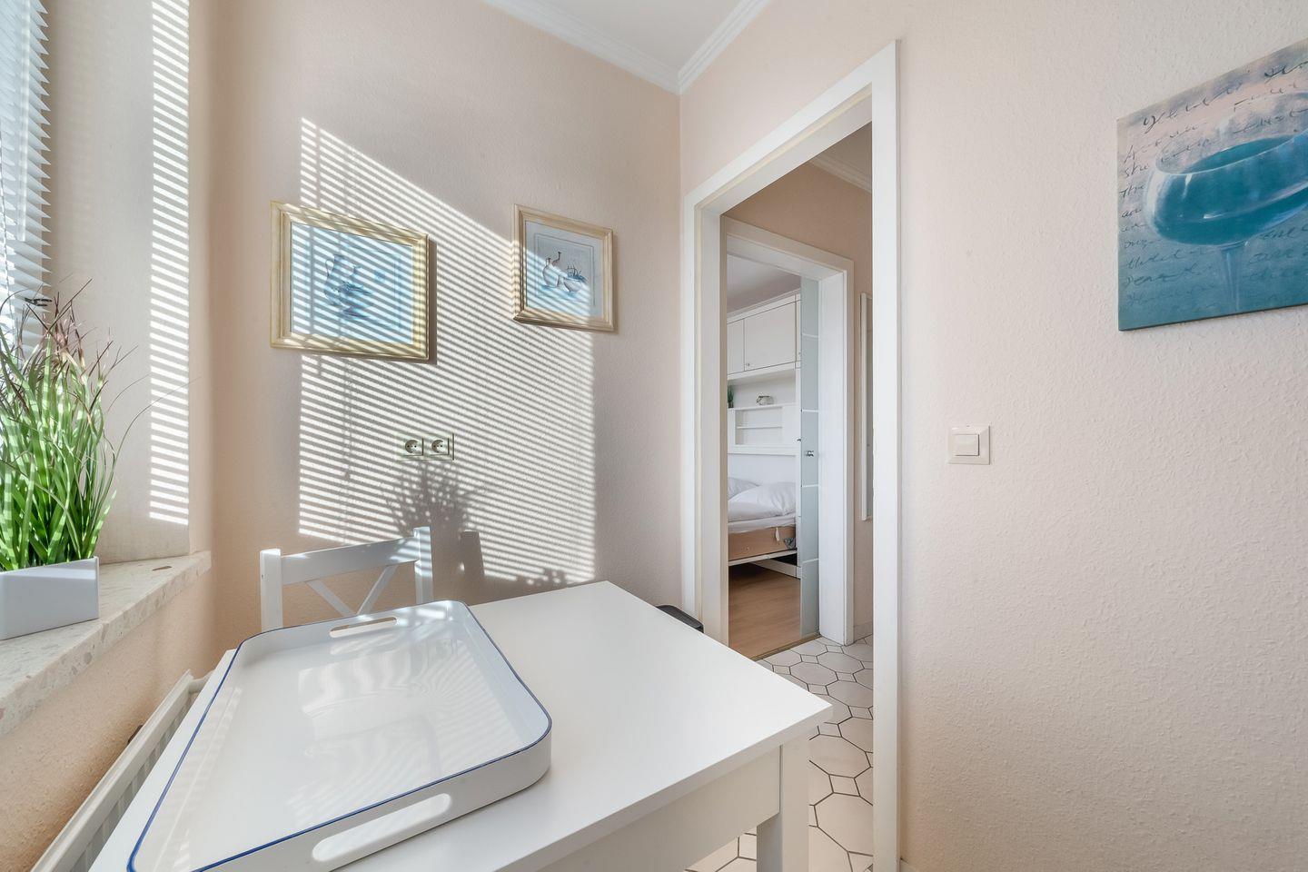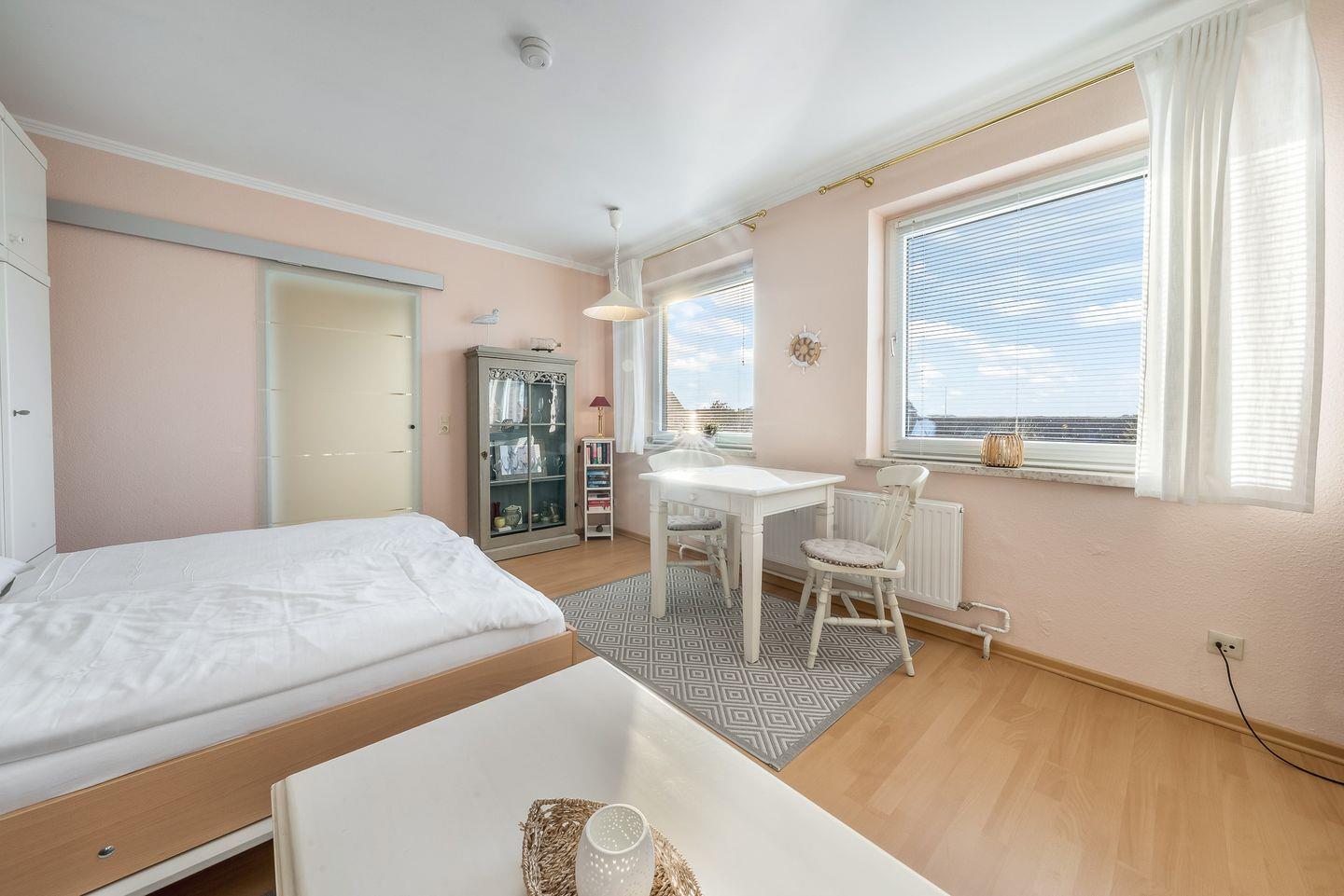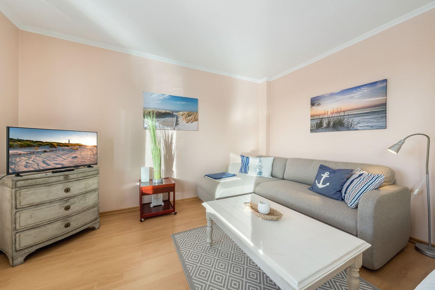 Das helle, freundliche 1-Zimmer-Apartment „Flut“ in Hörnum auf Sylt verbindet gemütliches Ambiente mit praktischem Komfort, ideal für kleine Budgets, die dennoch Wert auf eine angenehme Unterkunft legen.