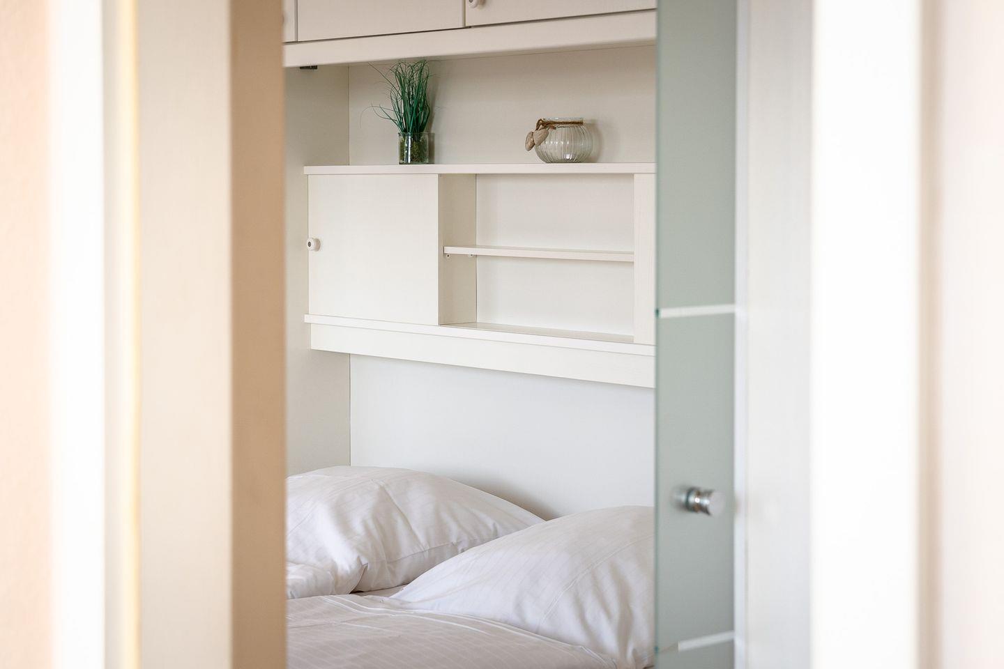 Das Schrankbett lässt sich im Handumdrehen ausklappen und verwandelt den Raum in einen gemütlichen Schlafbereich. Die einladende Couchecke mit Smart-TV bietet den perfekten Ort zum Entspannen und Fernsehen, während auf dem Schlafsofa bei Bedarf sogar noch Platz für ein Kind ist. Ein Esstisch im Wohnbereich sowie eine separate, kleine Küche mit eigenem Essplatz sorgen für maximale Flexibilität bei den Mahlzeiten. Abgerundet wird das Angebot durch ein modernes Badezimmer mit Dusche und WC.