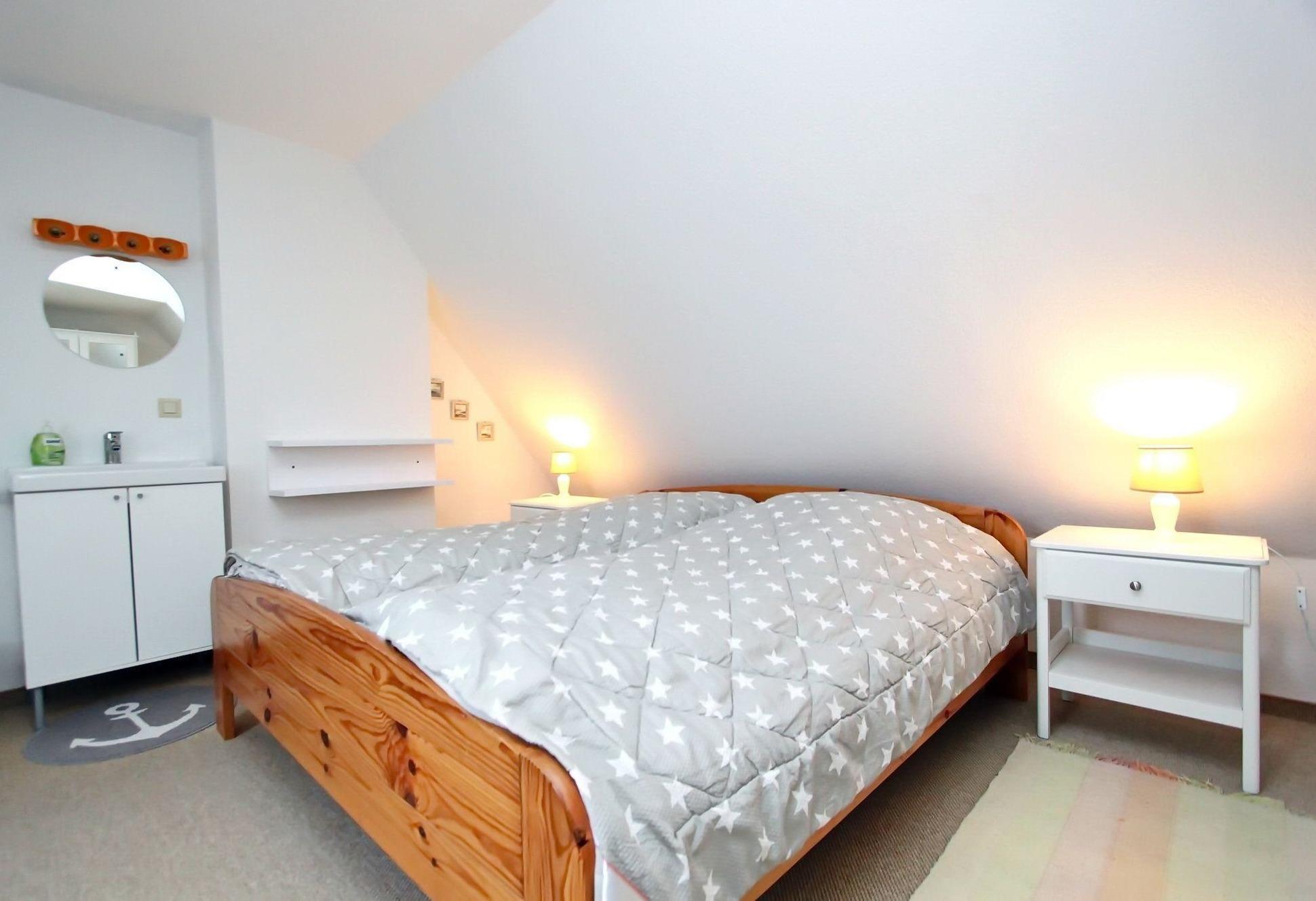 befindet sich ein weiterer Schlafraum mit Doppelbett, Nachttische, Waschbecken und ein