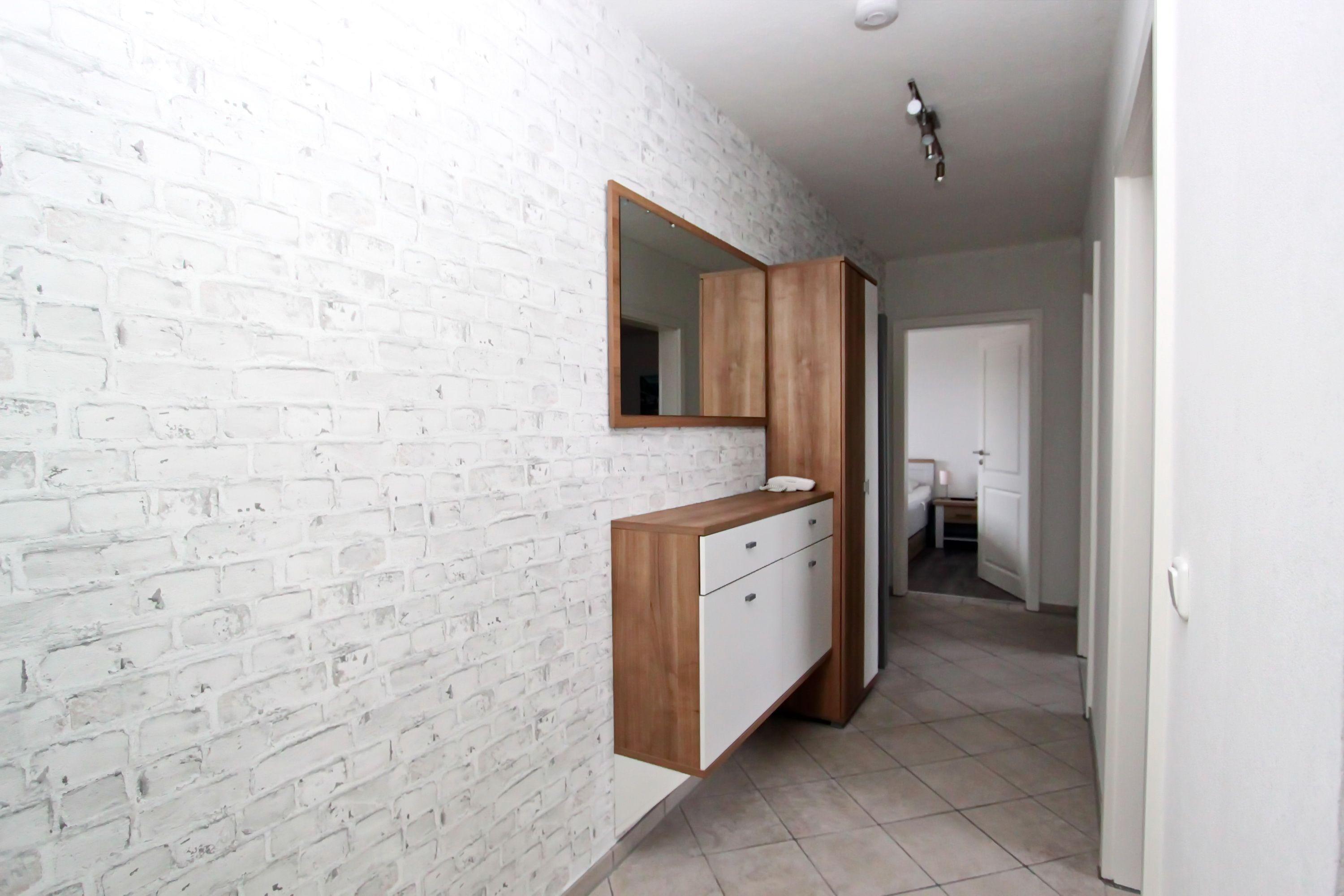 Betreten wird die Wohnung über den einladenden Flur, in welchem sich neben einem Schrank und einer Garderobe auch ein Festnetzanschluss befindet.