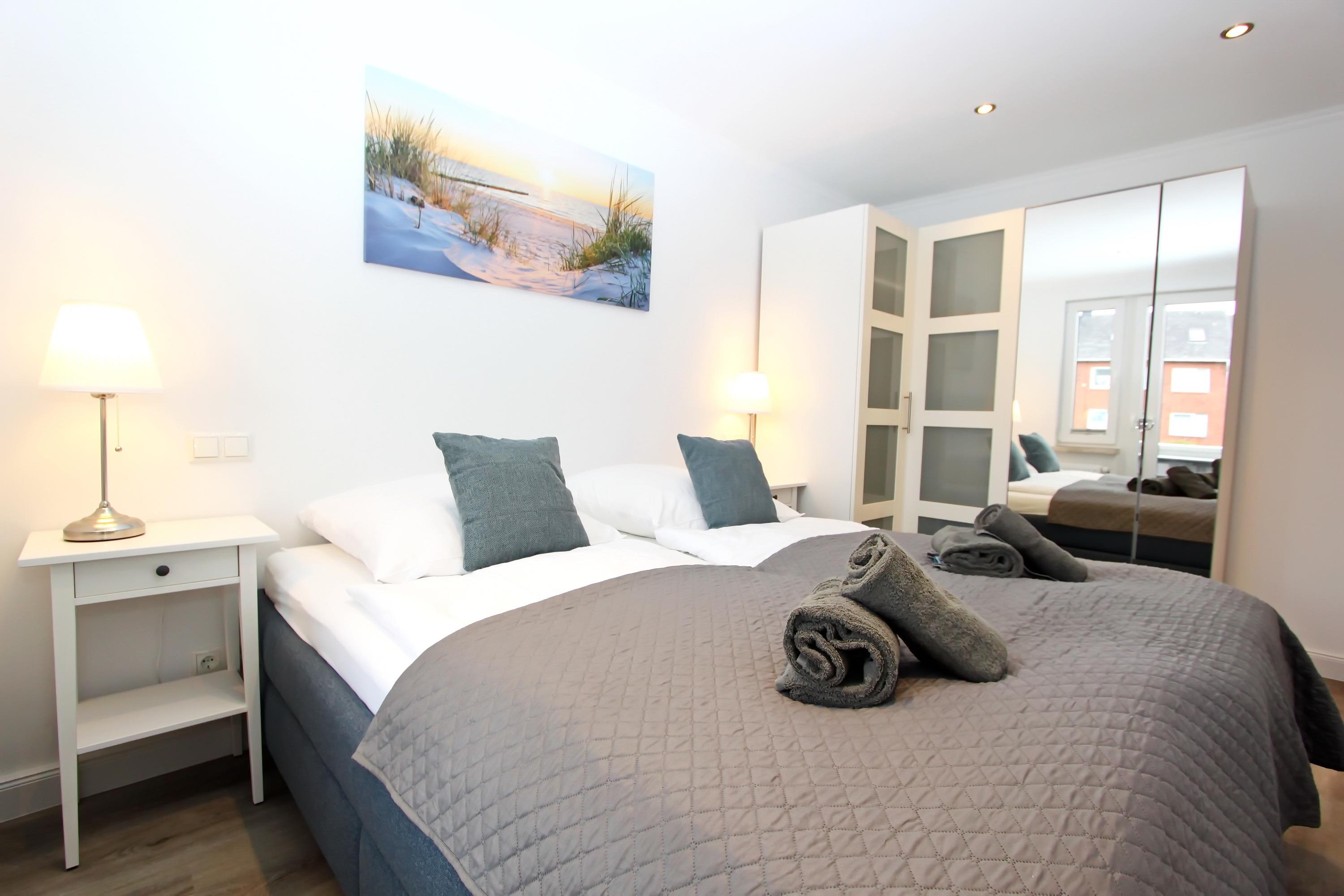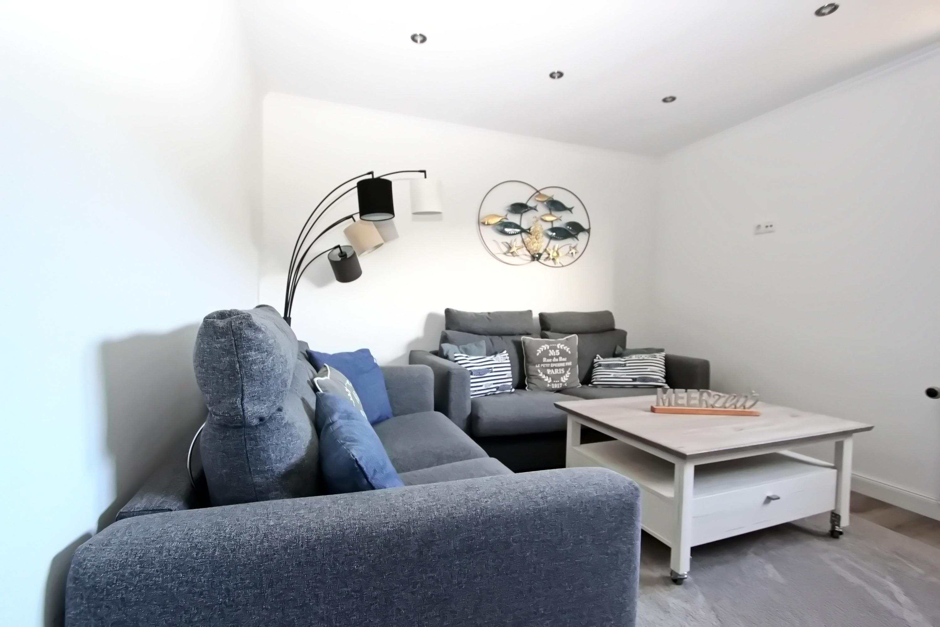 Das im Mai 2022 kernsanierte 2 Zimmer Appartement bietet auf seinen knapp 50 qm, im Hochparterre, Platz für bis zu 4 Personen. Ausgestattet ist es wie folgt: Wohnzimmer mit zwei Couchen (eine davon mit Schlaffunktion), Couchtisch, Vitrinen Schrank, Bücherregal, großer Smart-OLED-TV, Radio und kostenloses WLAN. Separates Schlafzimmer mit Doppelbett (1,80m x 2,00m), Nachtschränke, Nachttischlampen, großer Kleiderschrank, der ausreichend Stauraum bietet, Zugang zum Süd-/Westbalkon mit Balkonmöbel.