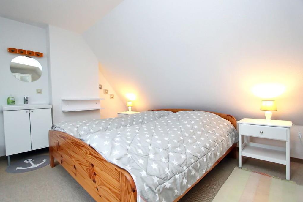 ganz ruhig gelegenes, gepflegtes 3 Zimmer Appartement, für bis zu 4 Personen, über OG/DG, mit ca. 60m². Im OG befindet sich ein Wohnraum mit einer neuen, offenen Einbauküche mit Ceranherd, Geschirrspüler, Kühlschrank mit kleinem Gefrierfach; Esstisch für 4 Personen, Schrank, Sat-Flat-TV, gemütliche Sitzecke mit zwei 2 Sitzer-Couches und Beistellhocker, Tisch, Zugang zum sonnigen Südbalkon mit Balkonmöbel, von dort aus hat man einen fantastischen Blick auf den Leuchtturm und die Fußgängerzone; Duschbad/WC; Flur mit Garderobe; Schlafraum mit Doppelbett (zwei einzelne Matratzen), Nachttische, ein großer Kleiderschrank bietet ausreichend Fläche; über eine Holzwendeltreppe geht es ins DG: dort befindet sich ein weiterer Schlafraum mit Doppelbett, Nachttische, Waschbecken und ein Kleiderschrank.