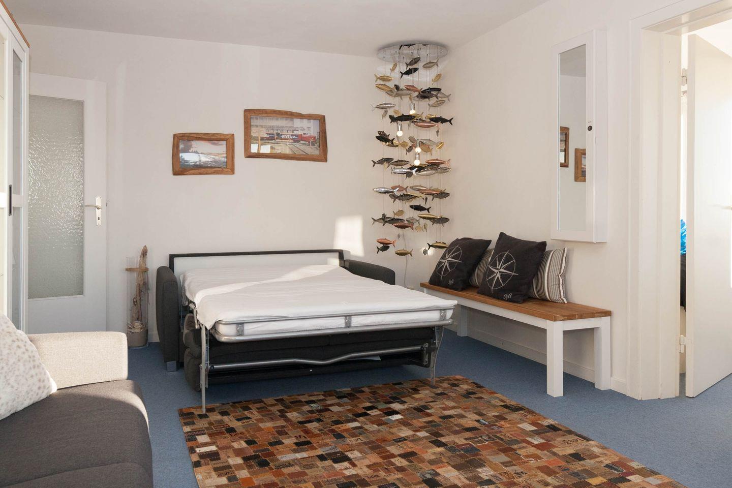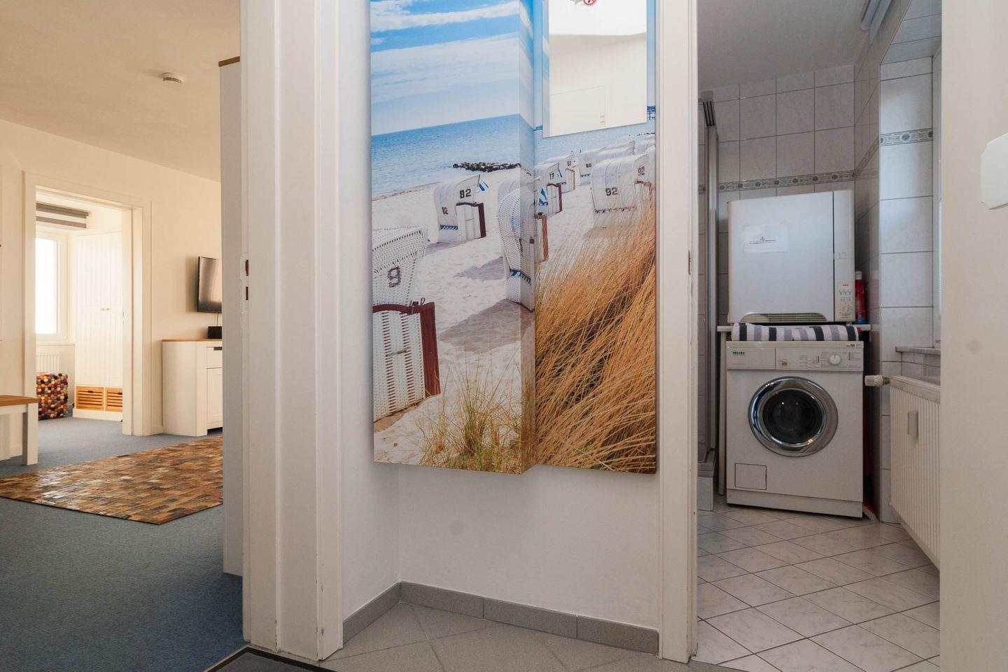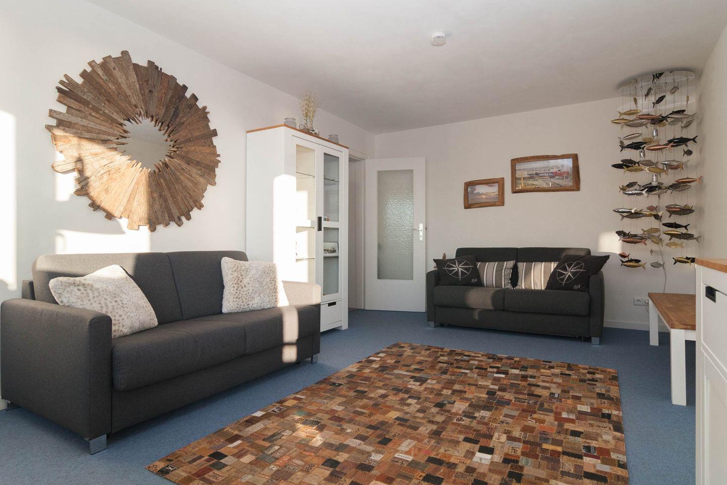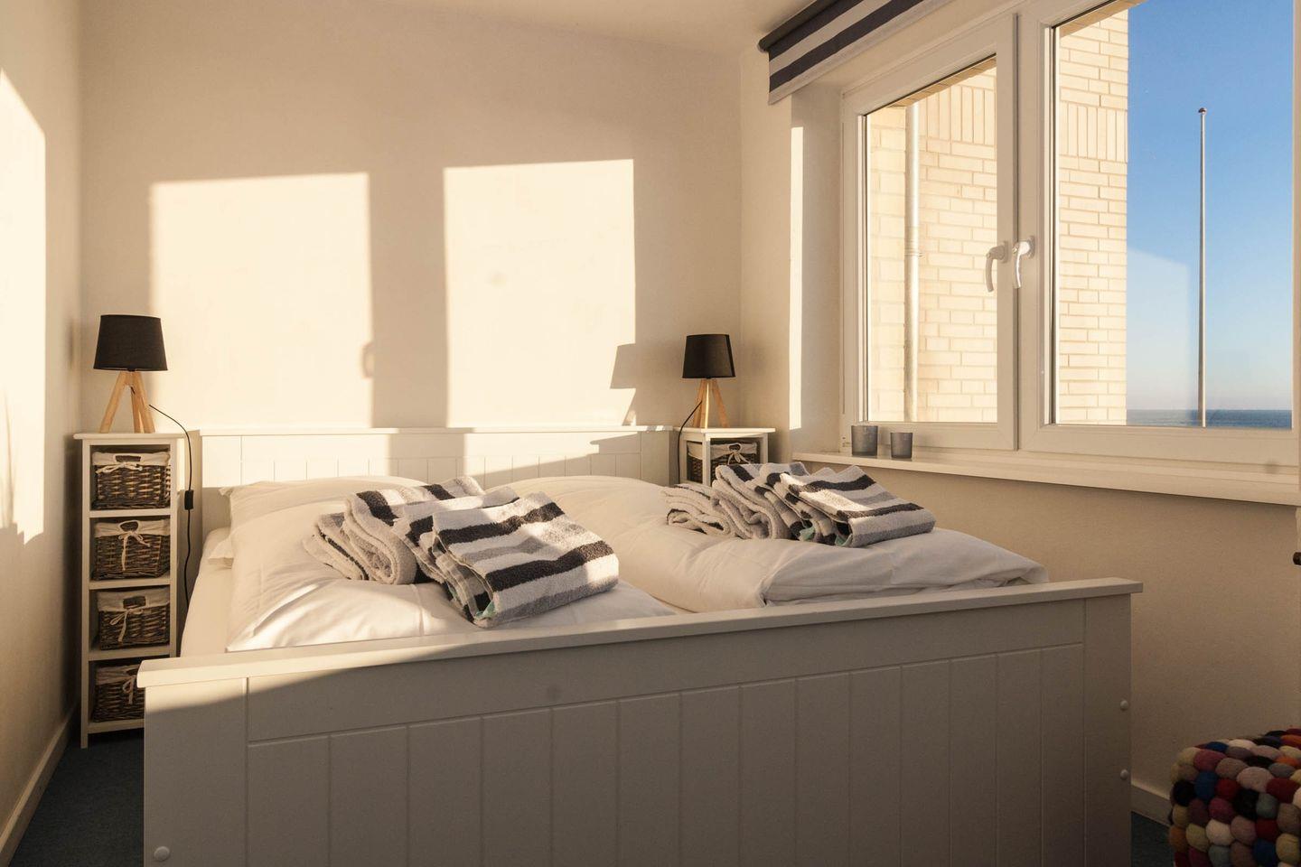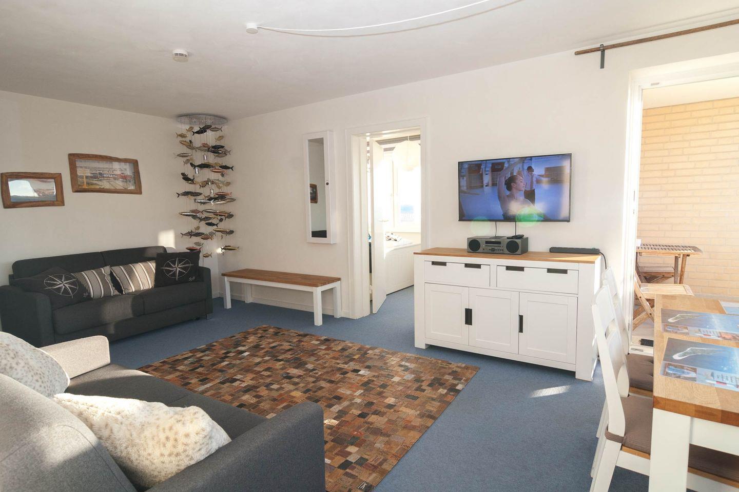 Diese Ferienwohnung mit Meerblick und Balkon ist für 4 Personen ausgestattet. Sie verfügt im Wohnbereich über 1 Schlafsofa was sich leicht ausklappen lässt. Das Schlafzimmer befindet sich mit dem Blick zum Oststrand im Nachbarzimmer.