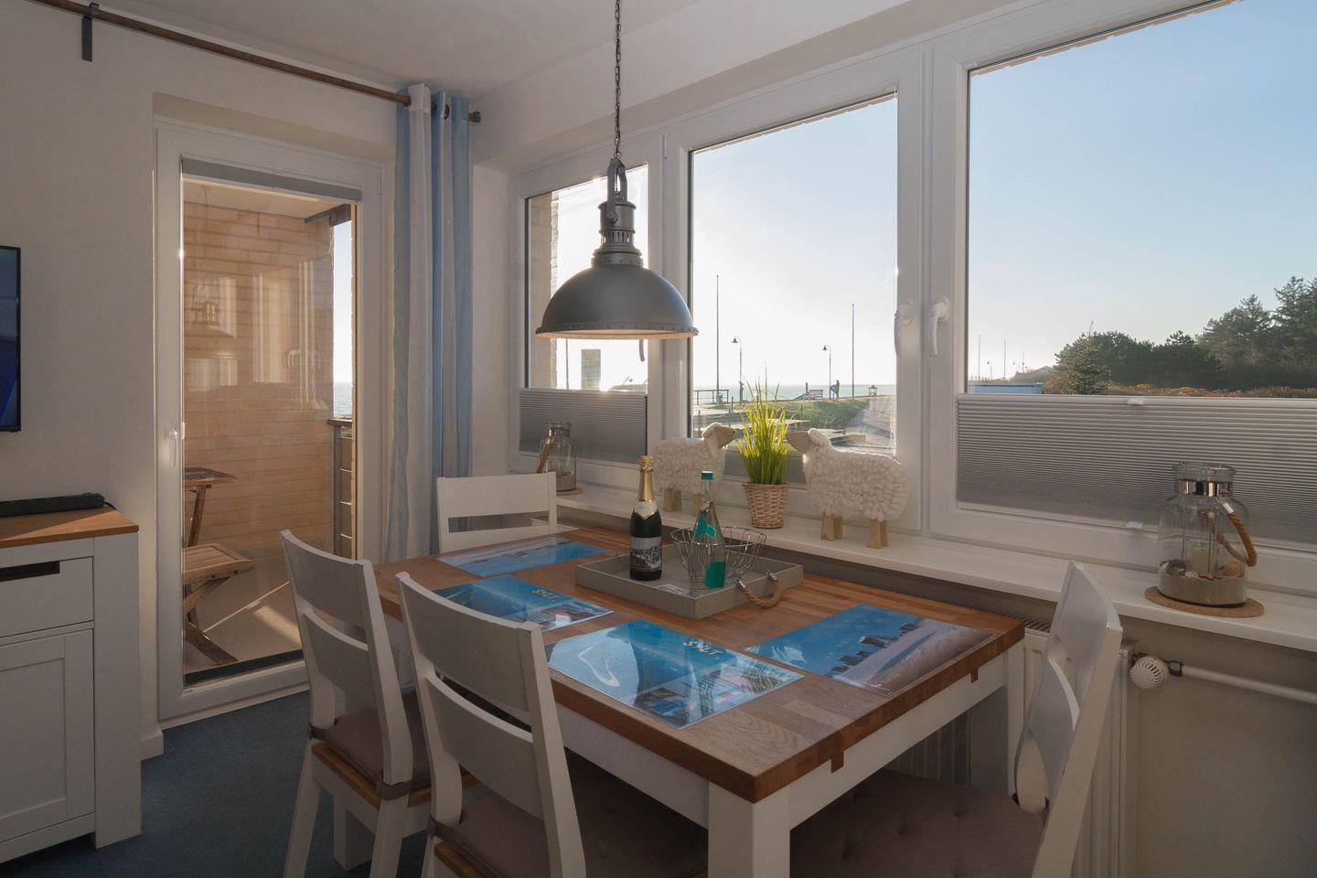 Ferienwohnung mit traumhaftem Meerblick, Balkon und moderner Ausstattung in Hörnum, ideal für 4 Personen.