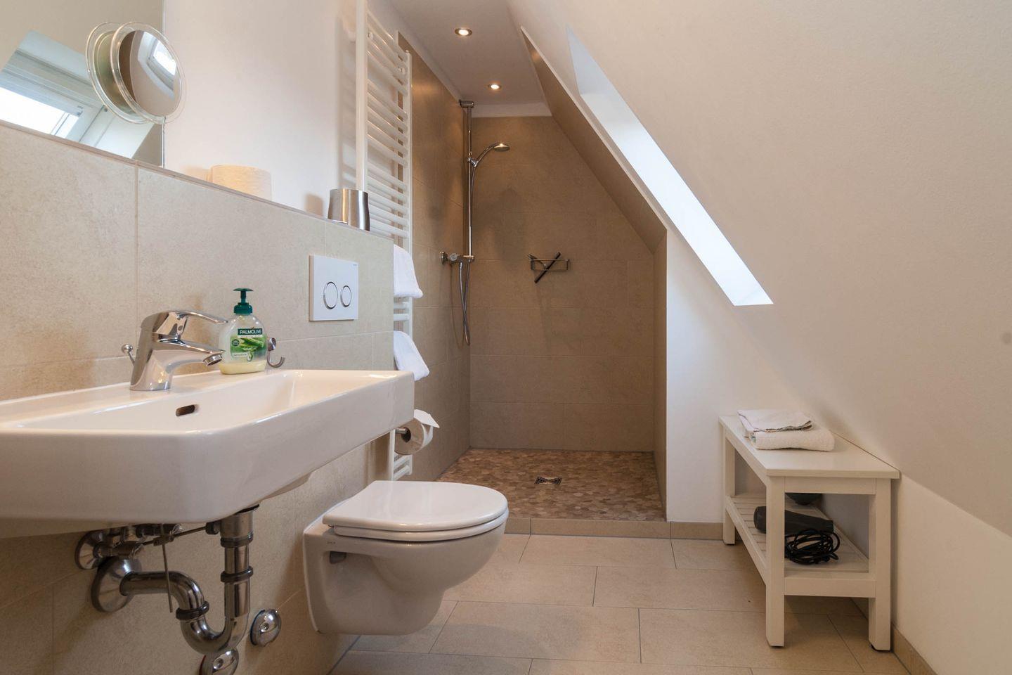 Im Obergeschoss/Dachgeschoss finden Sie 3 Schlafzimmer mit Doppelbetten und ein Schlafzimmer mit 2 Einzelbetten, sowie ein Duschbad und ein weiteres kleines Wohnzimmer, welches als Fernsehzimmer genutzt wird.