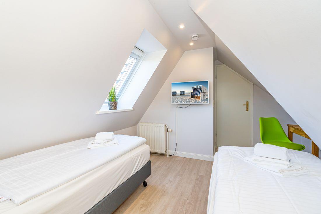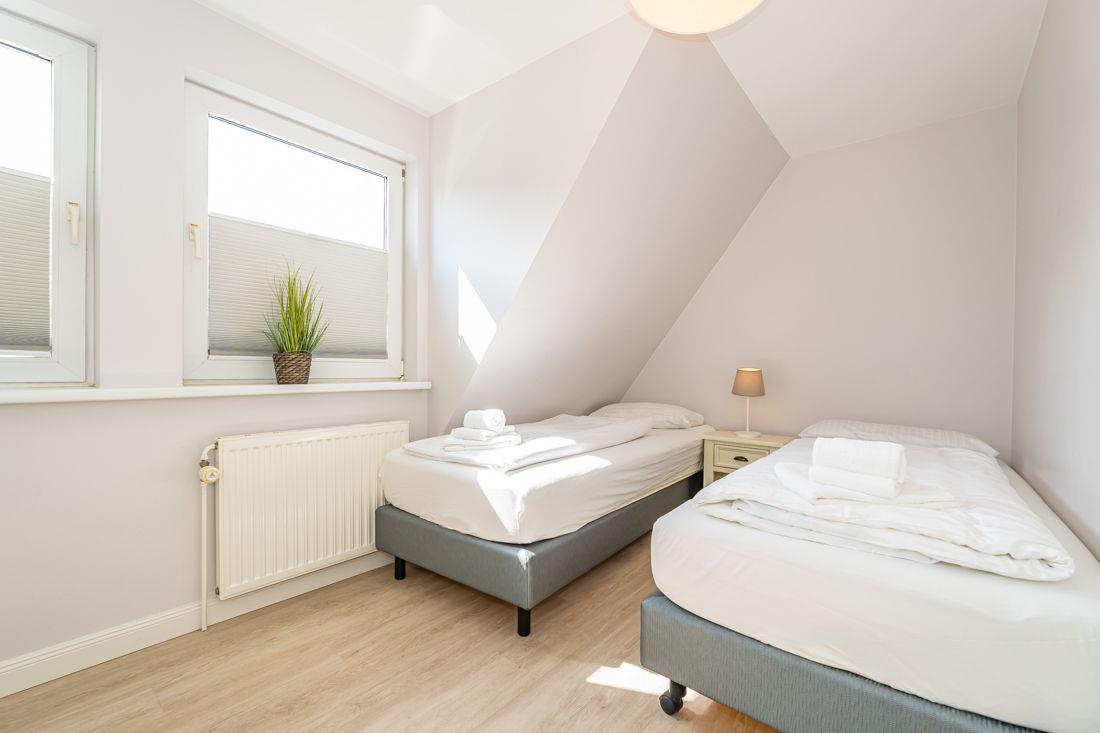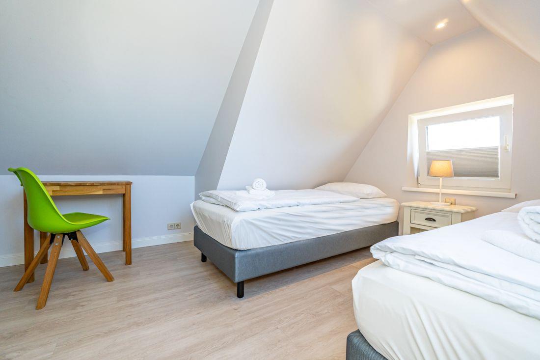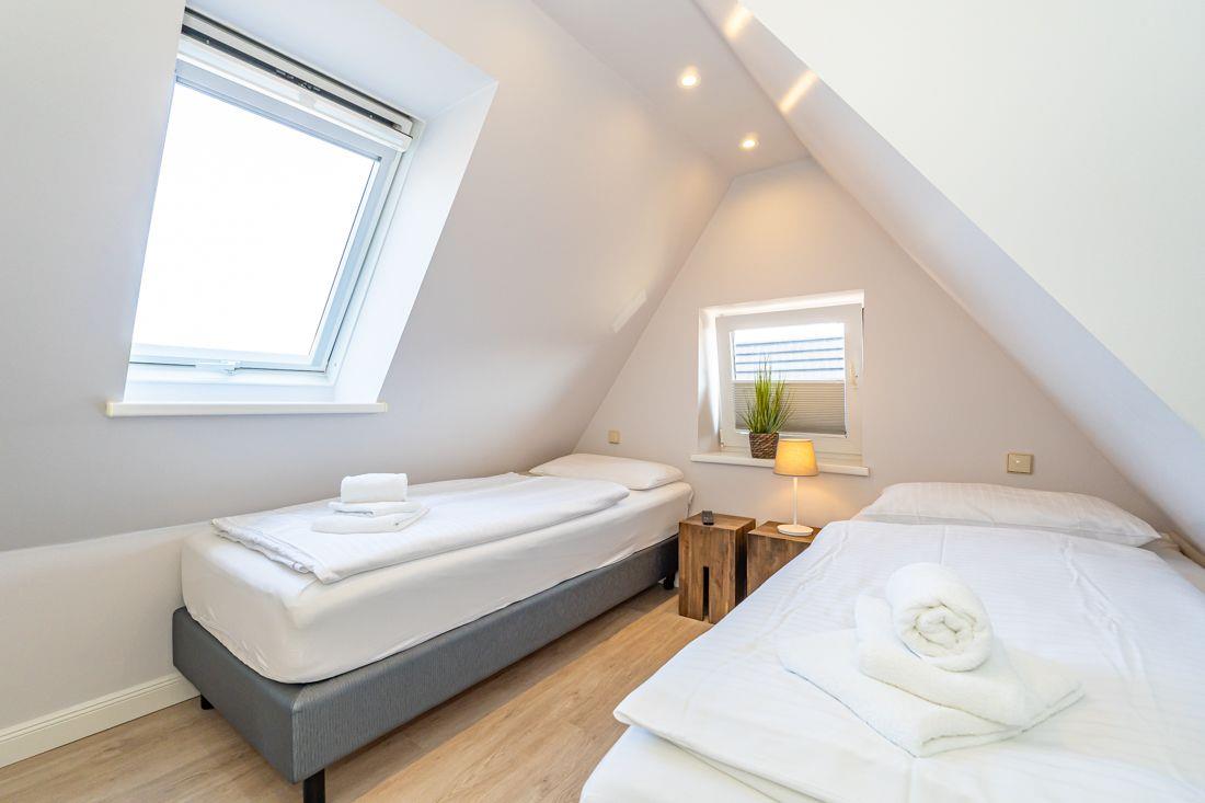 Zwei Schlafzimmer ausgestattet mit einem Doppelbett bzw. Einzelbetten (Boxspringbetten).