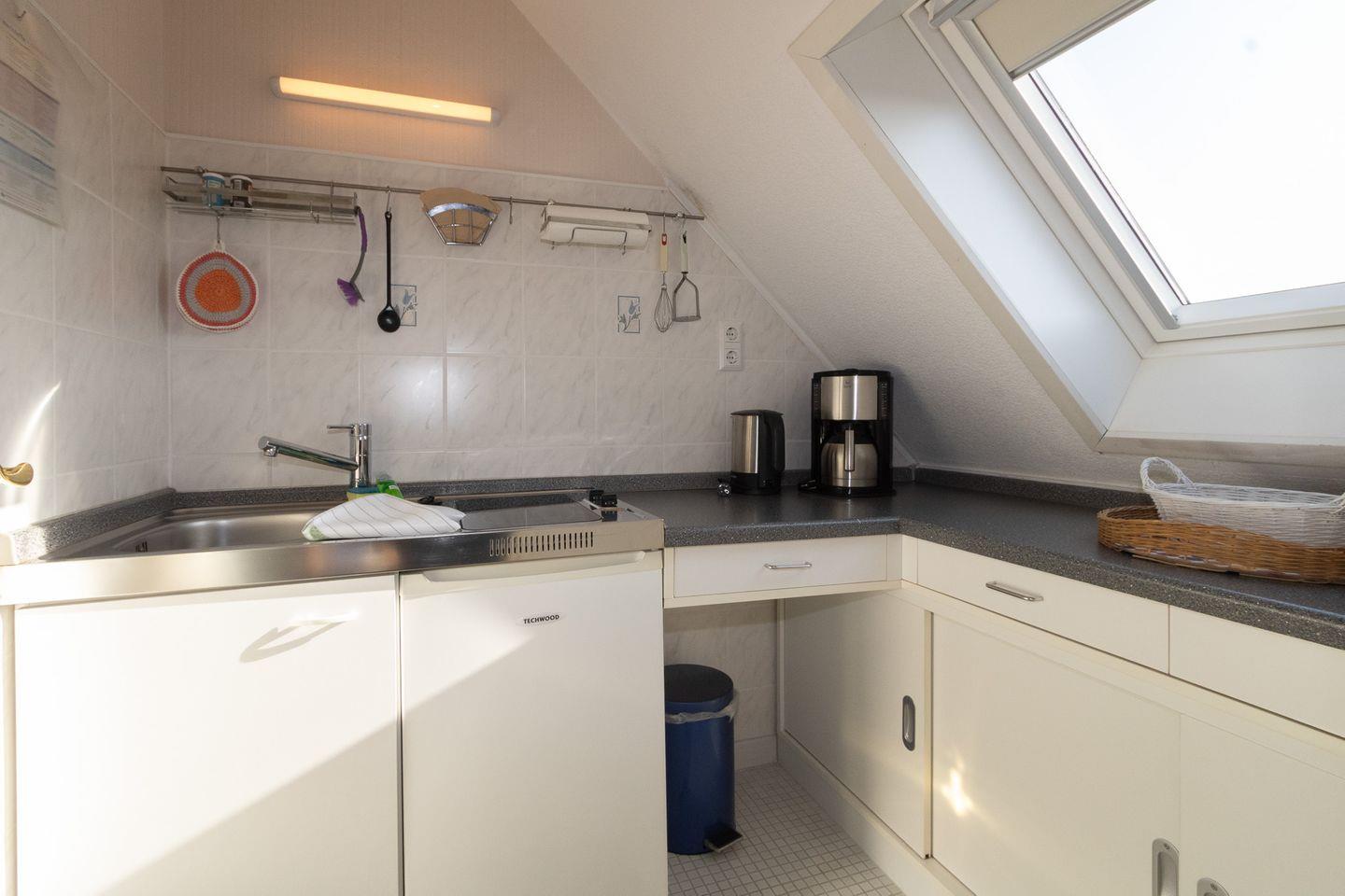 Die Wohnung befindet sich im 2.Obergeschoss des Hauses. Sie verfügt über 2 Einzelbetten die im seperatem Schlafzimmer sind. Die Pantryküche ist mit Allem ausgestattet für den täglichen Bedarf. Kaffeemaschine, Toaster und Wasserkocher sind ebenfalls vorhanden. Das Badezimmer verfügt über ein WC und eine Dusche und ist hell ausgestattet.