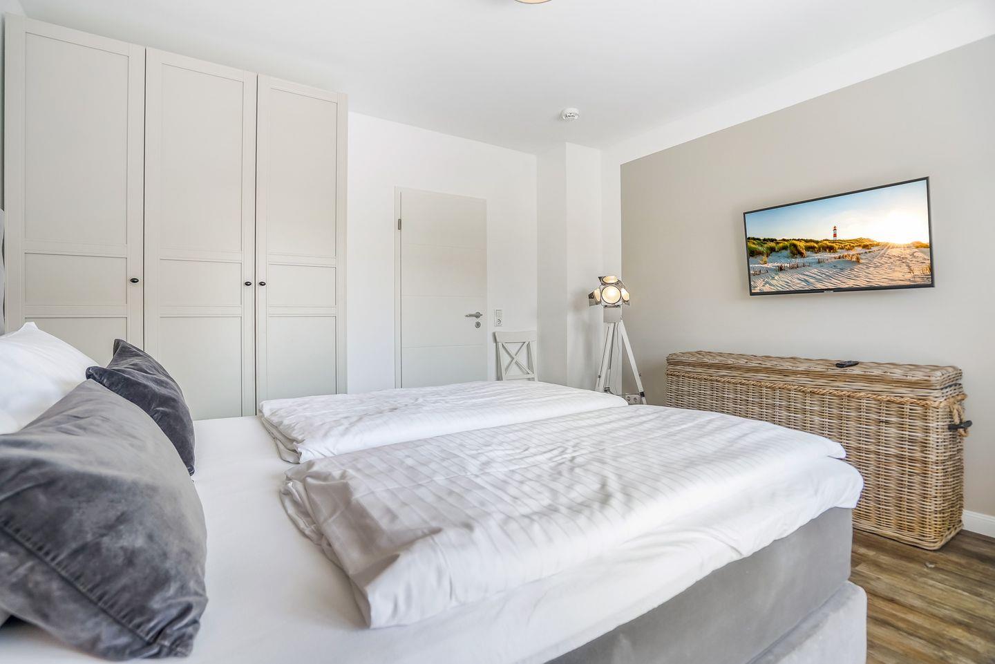 Schlafzimmer sind jeweils mit einem hochwertigen Boxspringbett ausgestattet und