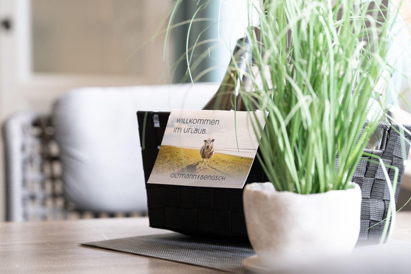 Die moderne Ferienwohnung „Strand und Meer“ ist etwas für Inselliebhaber, die einen fantastischen Ausblick auf das Meer suchen. Der hell gestaltete Wohnbereich verfügt über eine gemütliche Sitzgelegenheit, TV sowie einem Essbereich von wo aus Sie freie Sicht auf die Hörnumer Promenade haben. Vom Wohnbereich gelangen Sie direkt zum angrenzenden Balkon. Das Hauptschlafzimmer der 70qm großen Wohnung verfügt über ein gemütliches Doppelbett sowie einem Kleiderschrank.