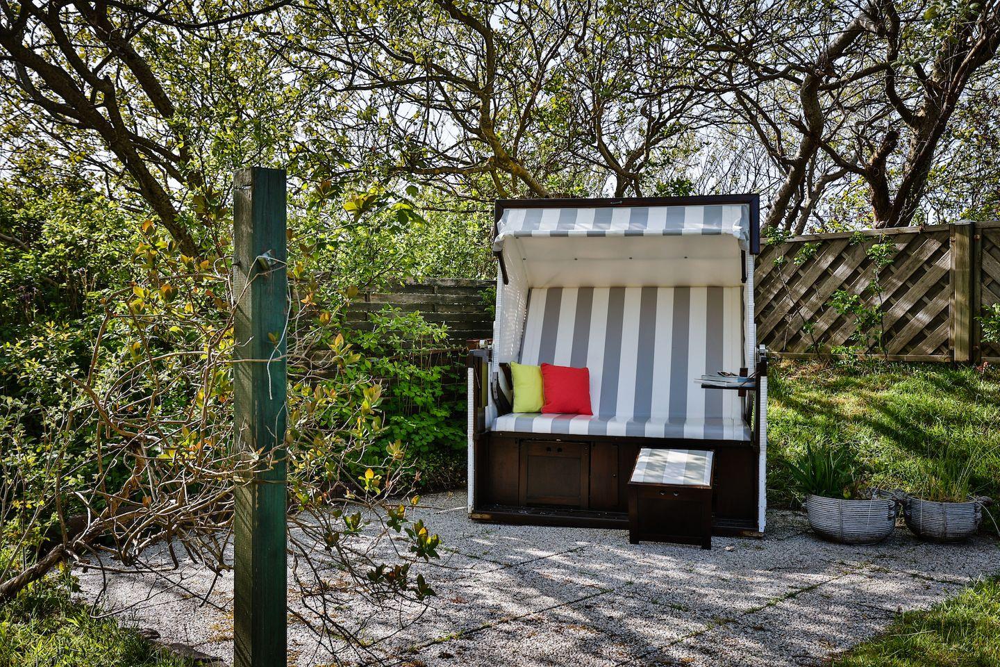 sowie einem Strandkorb, in dem Sie Ihre Urlaubstage gemütlich ausklingen lassen