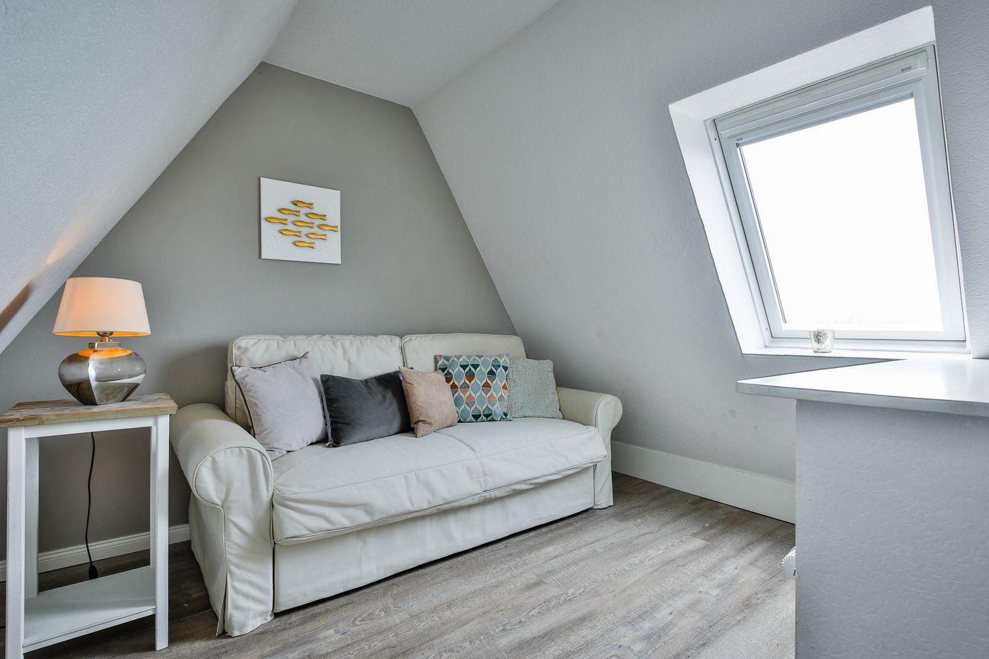 Im Erdgeschoss wartet ein moderner Wohnbereich mit gemütlicher Sitzecke und