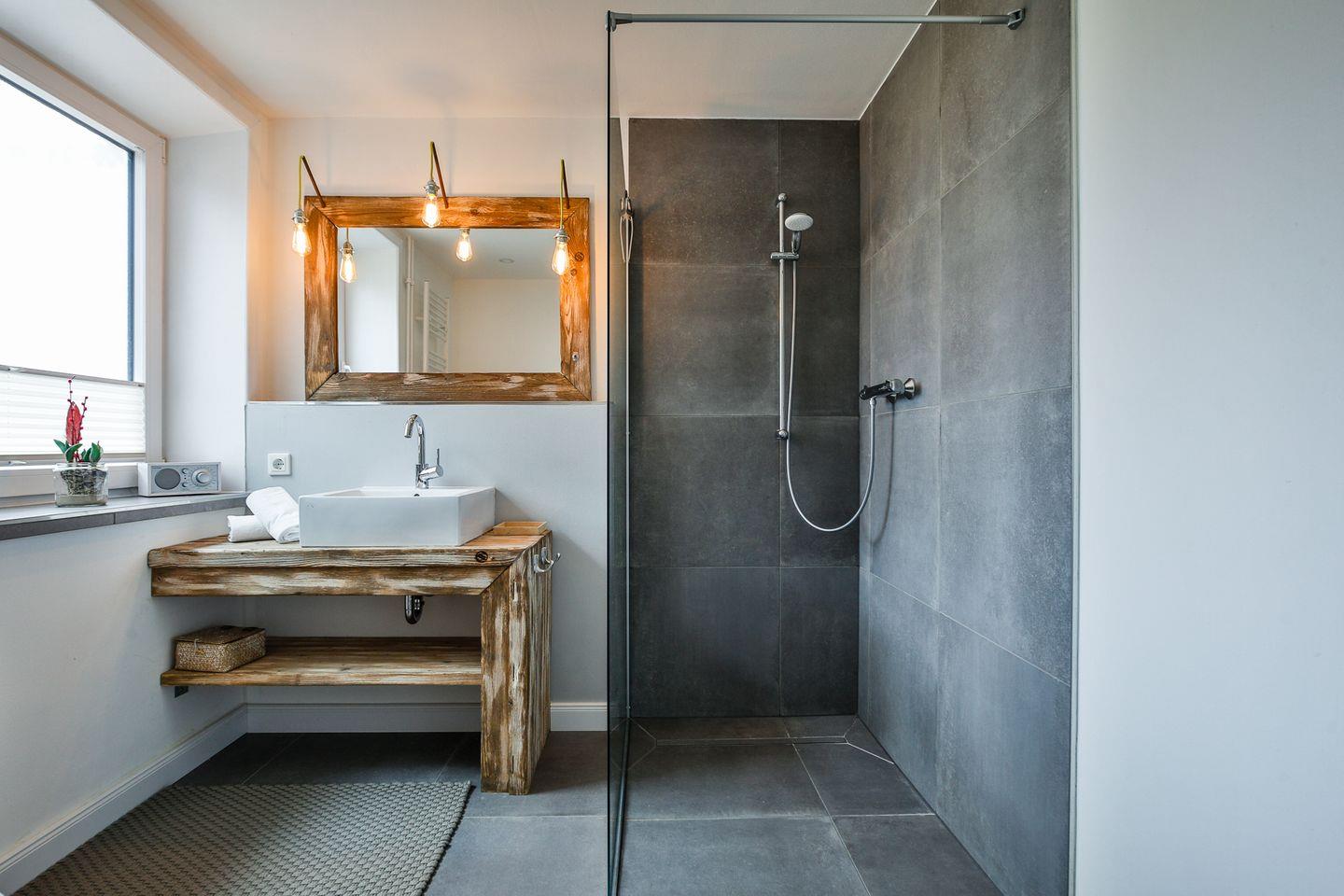 Moderne Tageslichtbad mit Dusche und WC wurde 2021 komplett saniert und