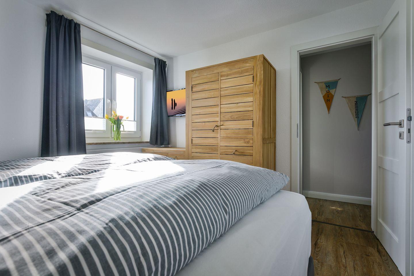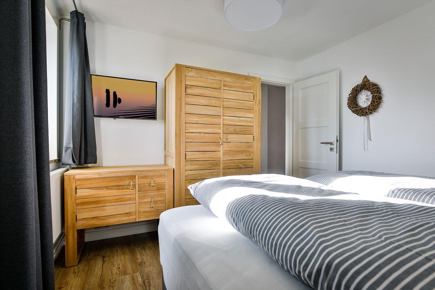 Schlafzimmern. Zwei Schlafräume verfügen über ein Doppelbett, Stauraum und