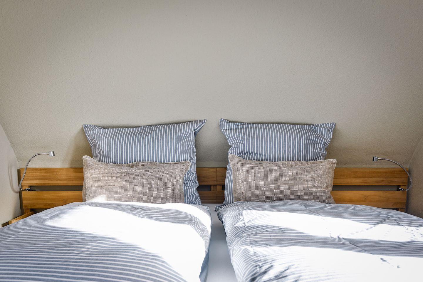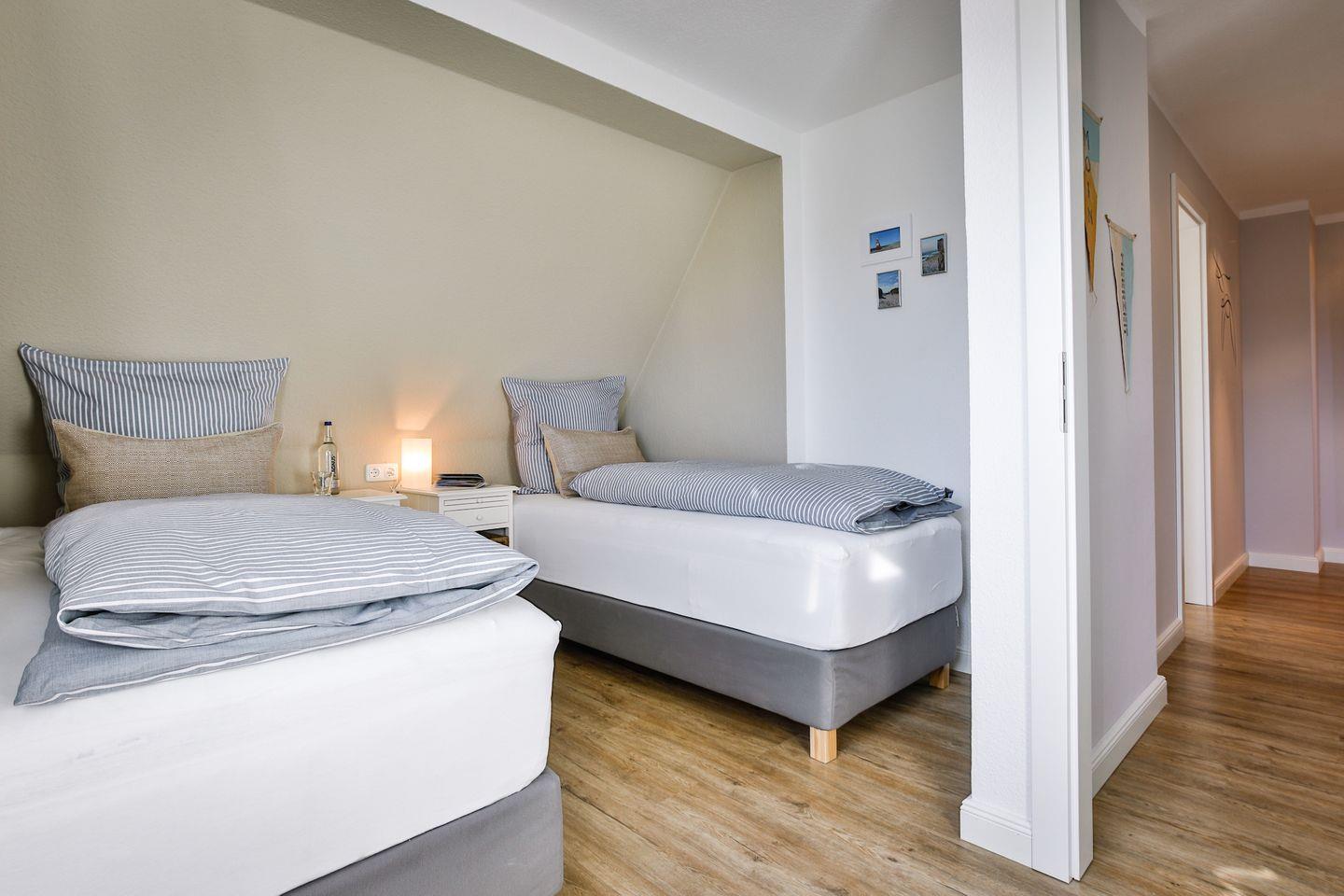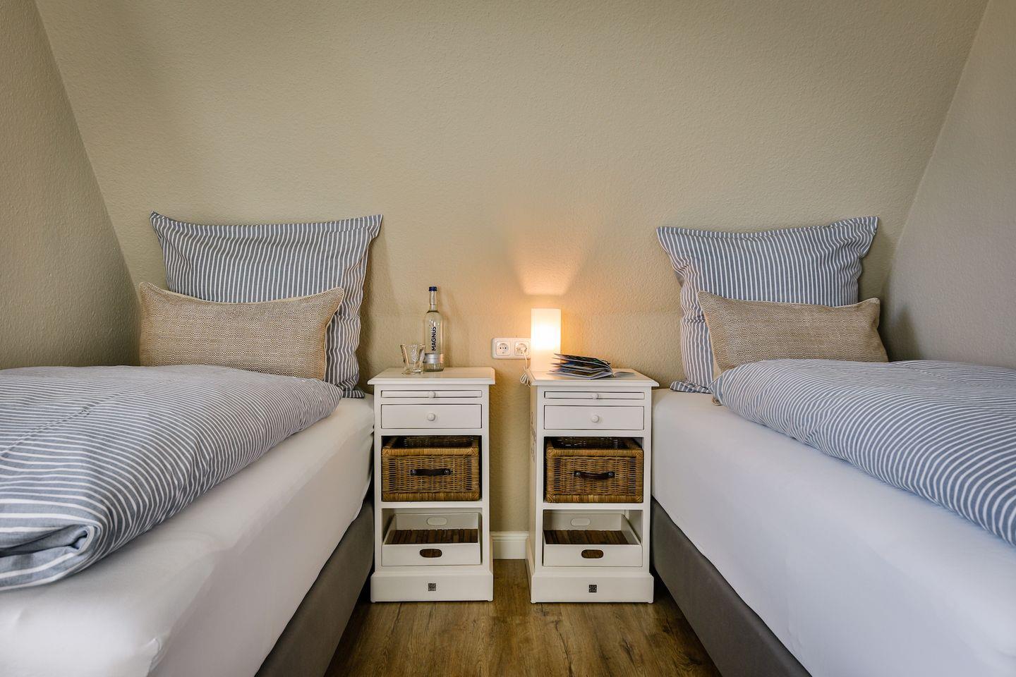 Der dritte Schlafraum ist mit zwei Einzelbetten und einer Kommode