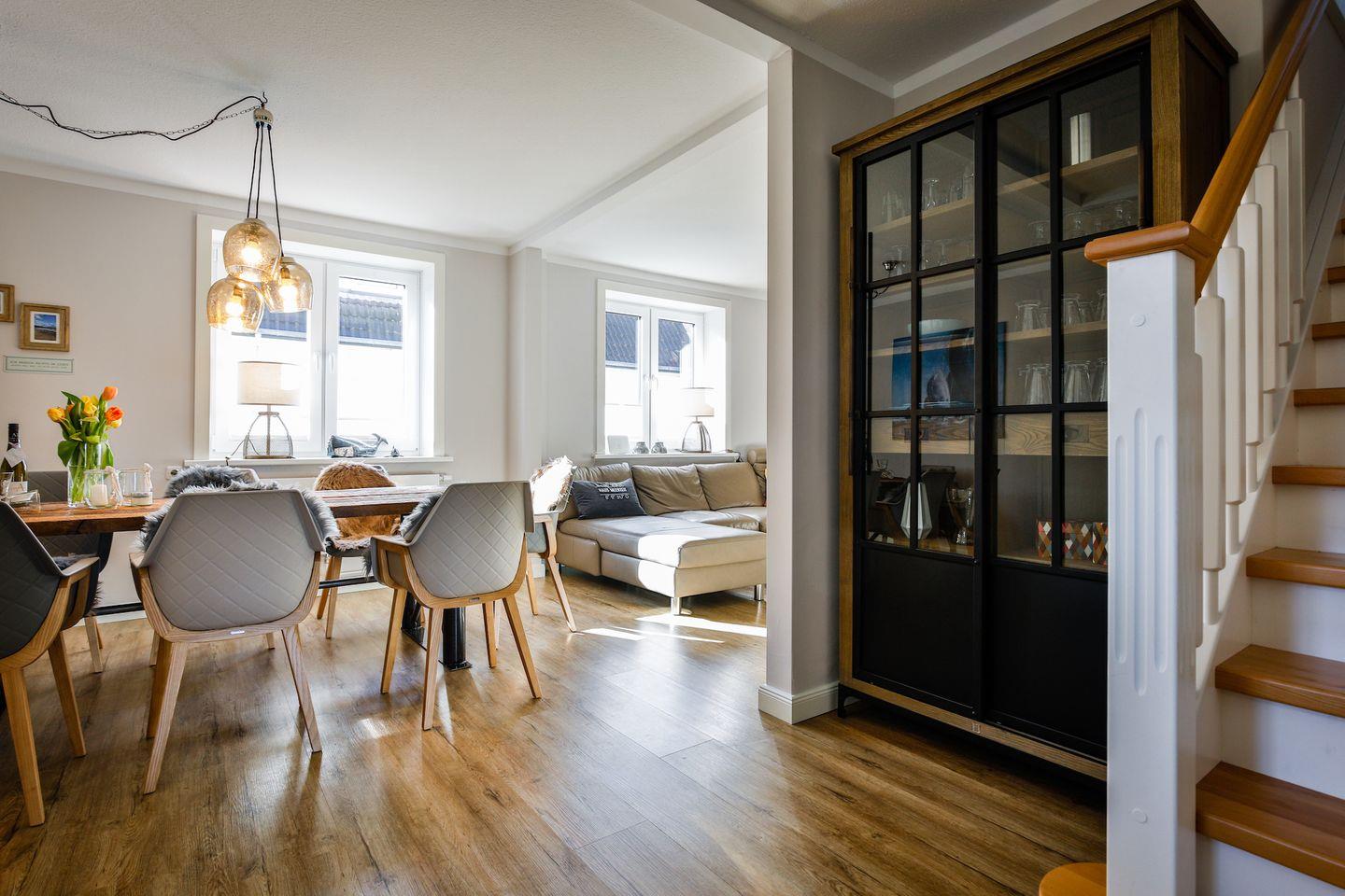Im Erdgeschoss erwartet Sie ein großer, offen gestalteter Wohnbereich mit