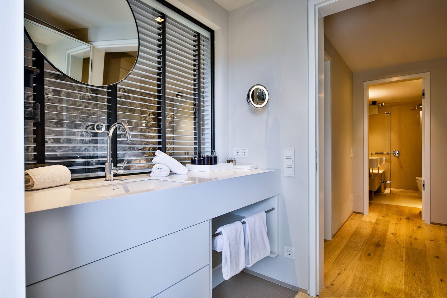 über die 2,00 x 2,10 Meter großen Boxspringbetten freuen. Jeweils ein Loewe-TV