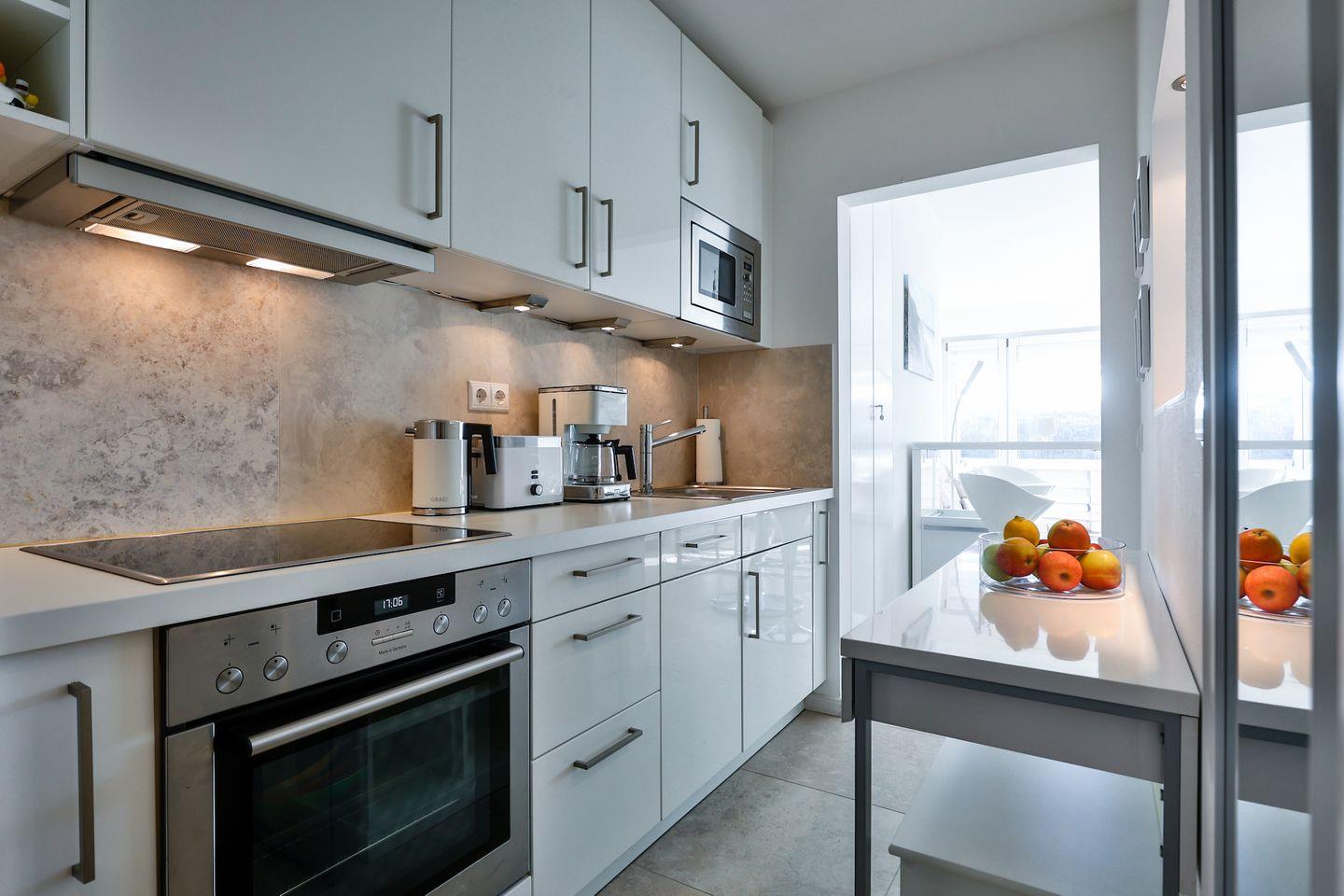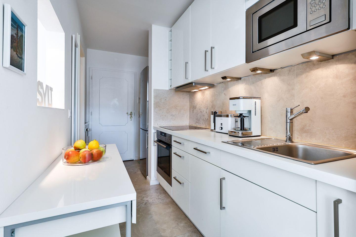 ausgestattete Küchenzeile mit allem, was man für einen Kochabend benötigt.