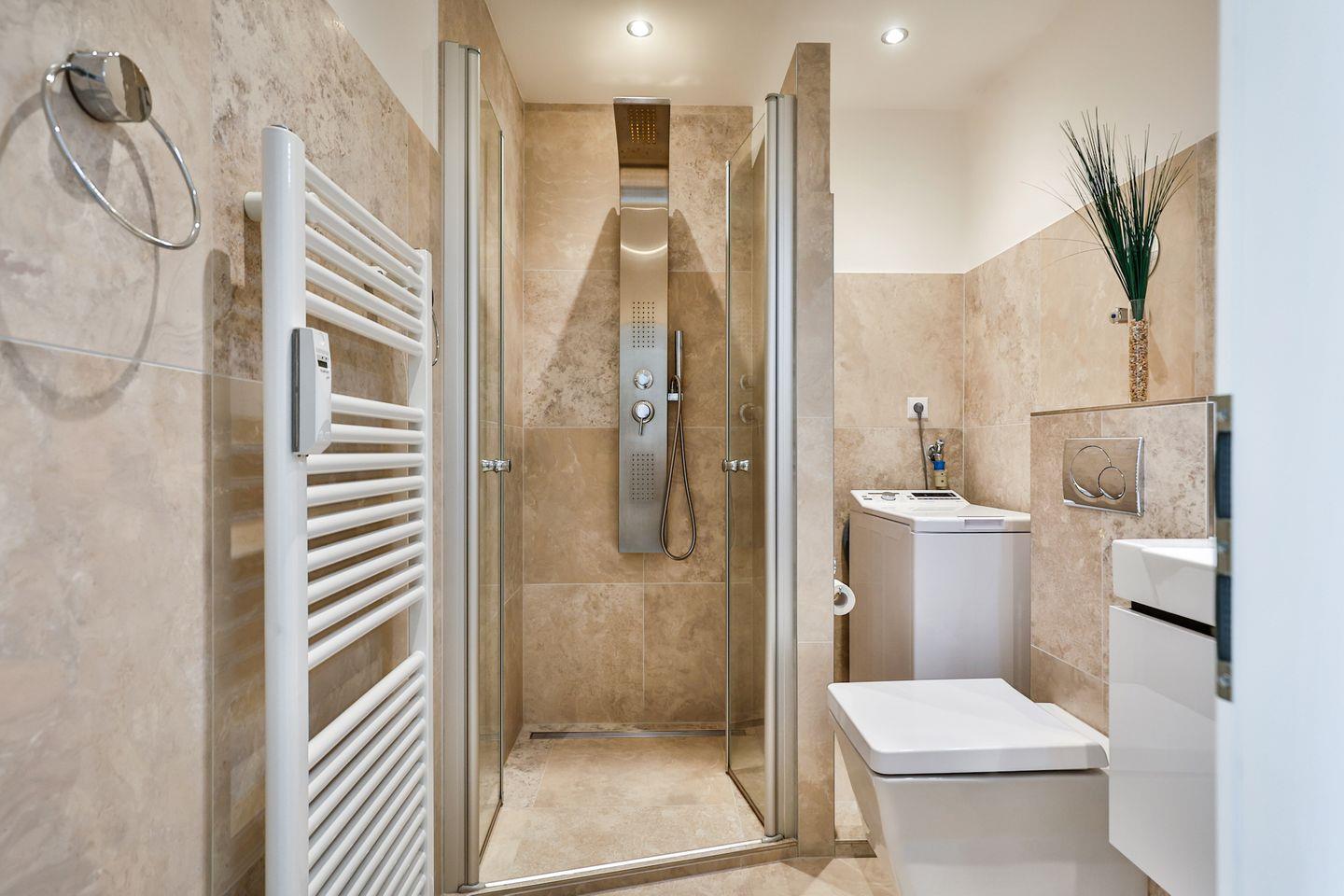 Waschtisch sowie einen Waschtrockner.