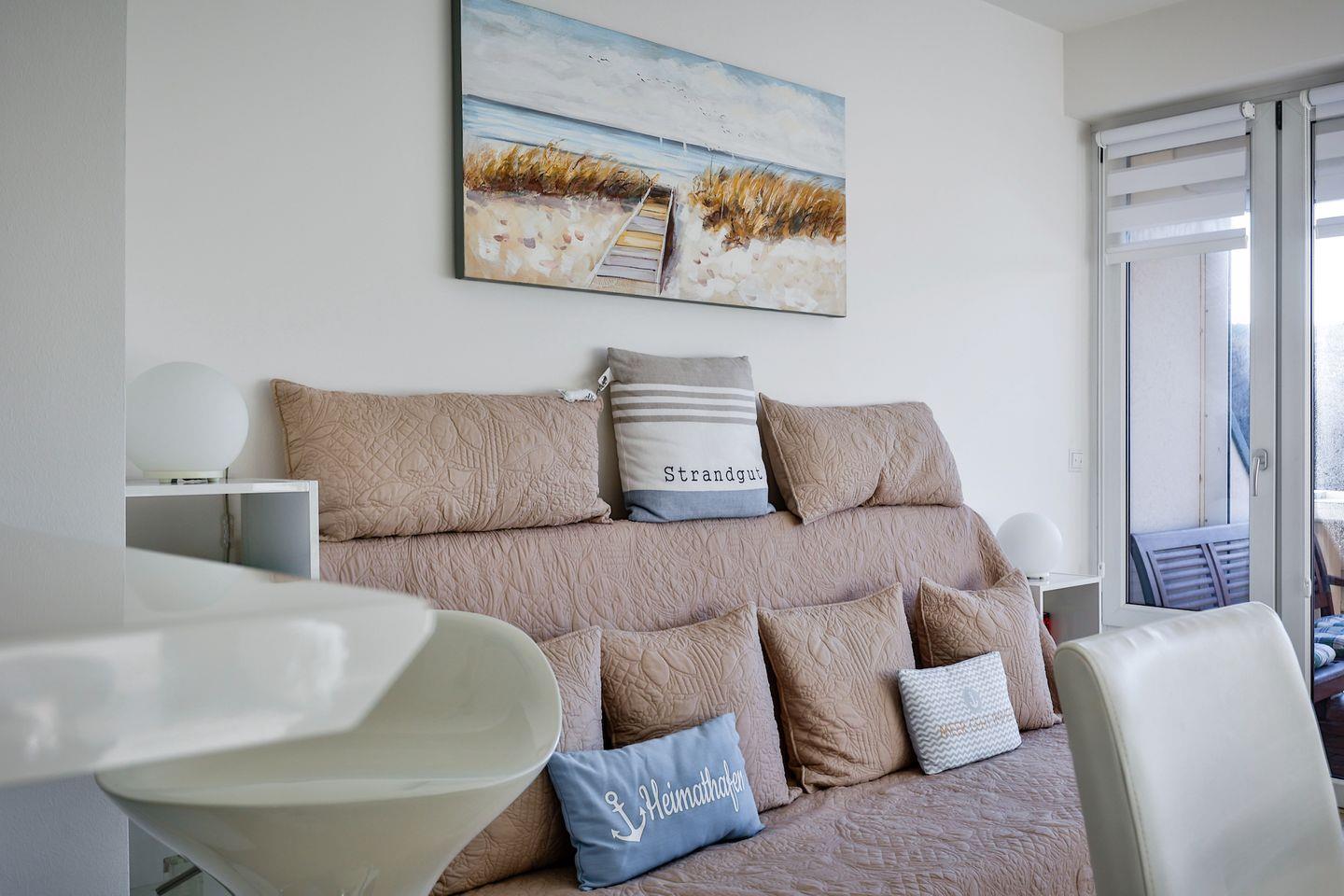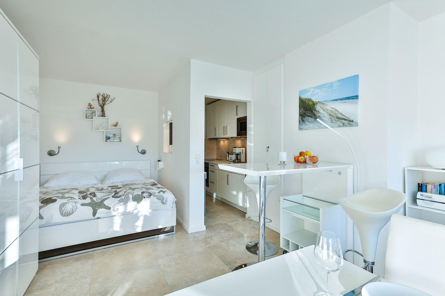 Modernes 1-Raum-Appartement in absolut strandnaher Lage mit Westbalkon.