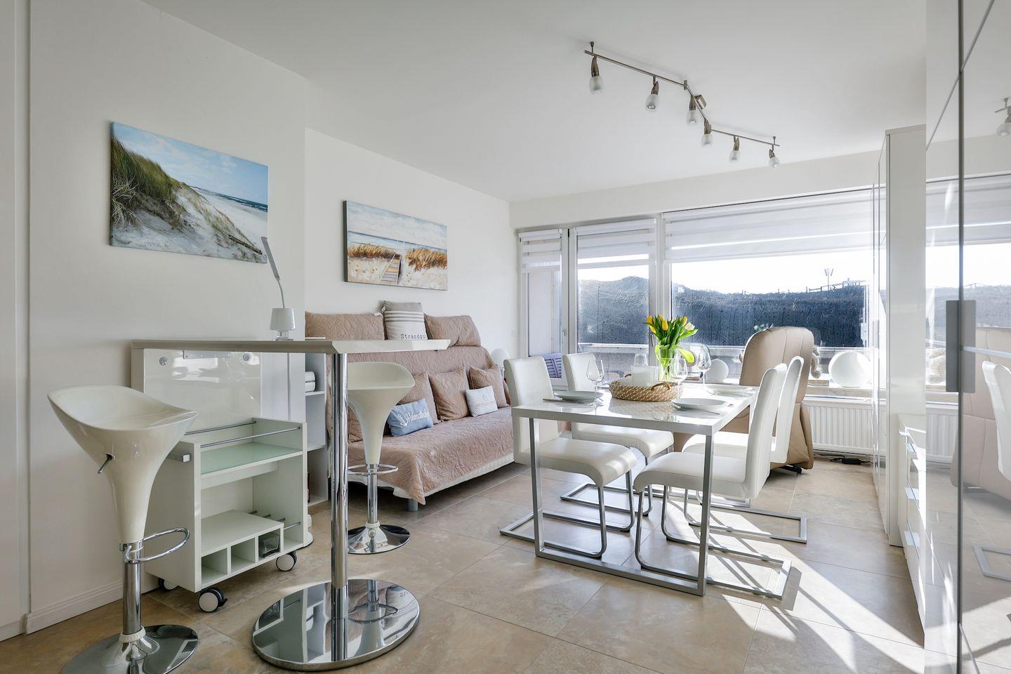Modernes 1-Zimmer-Appartement in Hörnum mit Westbalkon und direktem Strandzugang.