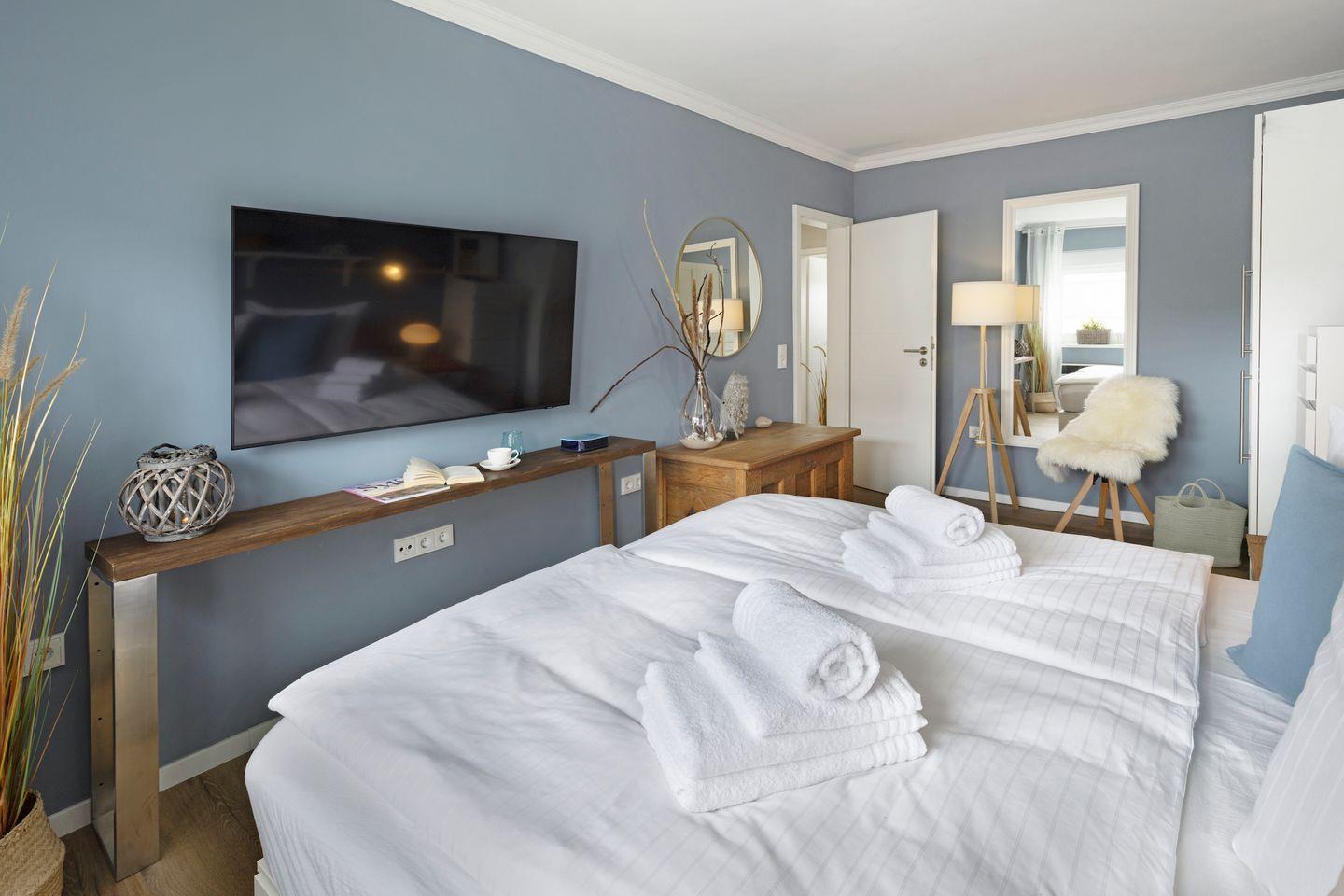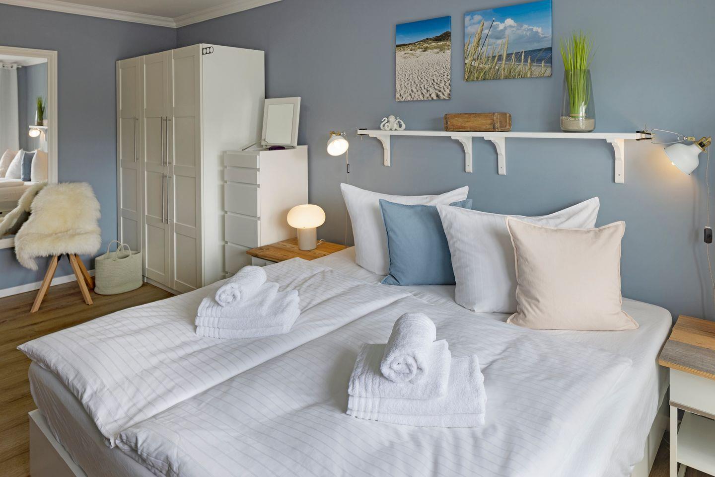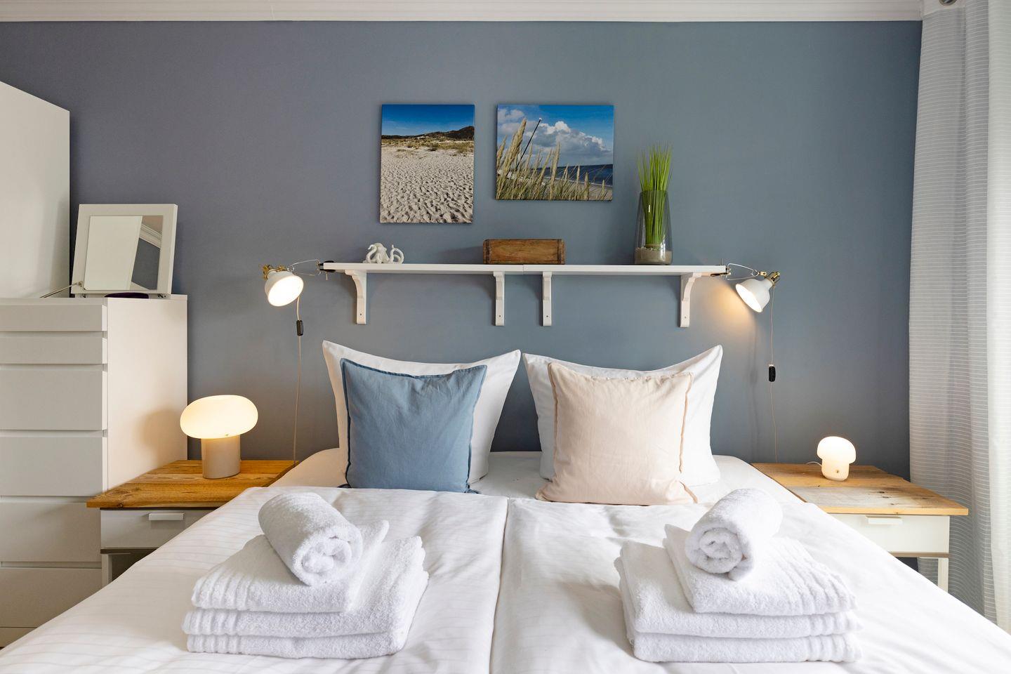 Beide Schlafräume sind mit hochwertigen bequemen Doppelbetten (1,80 m x 2,00 m