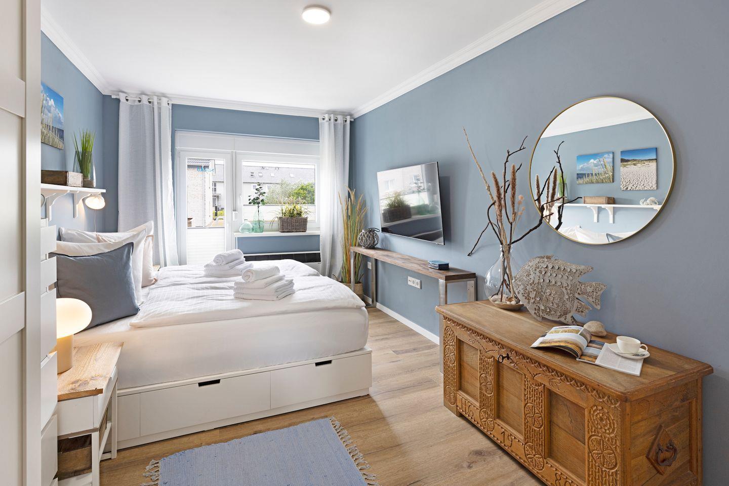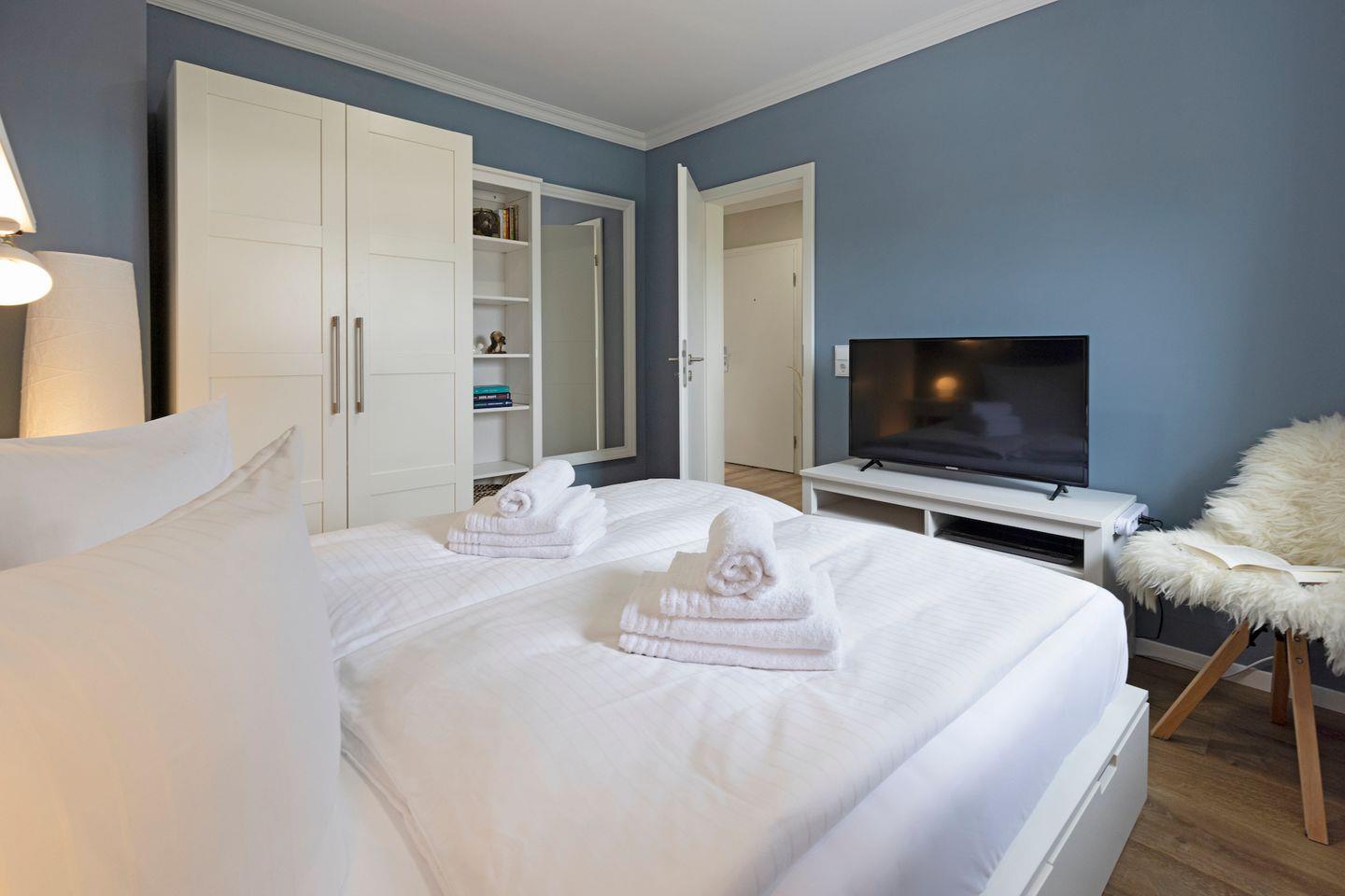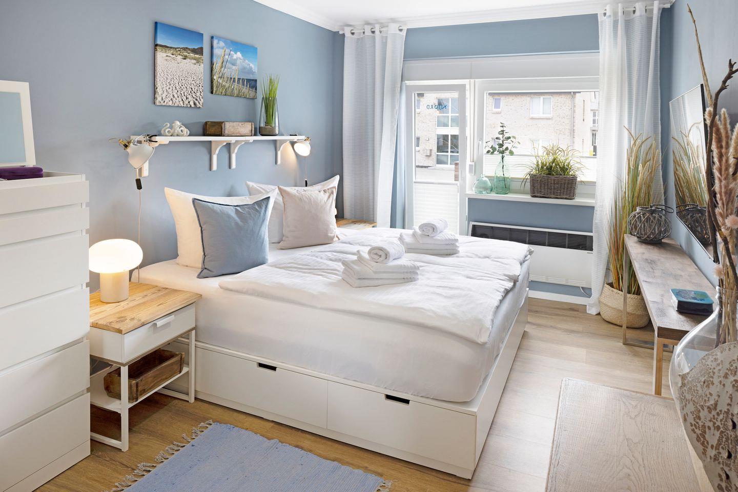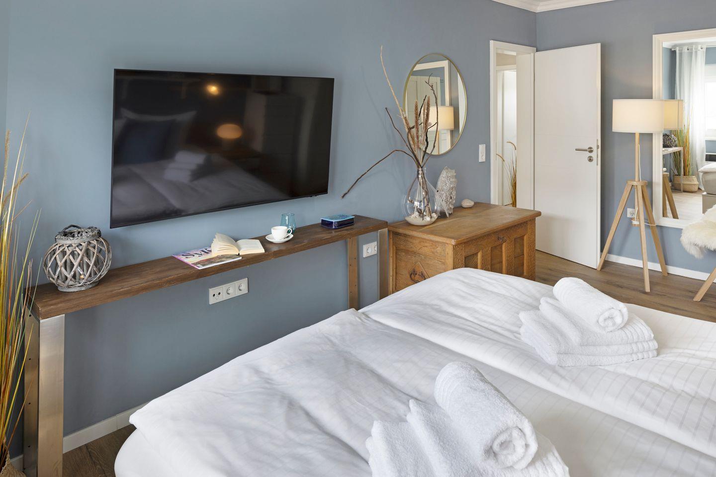 Beide Schlafräume sind mit hochwertigen bequemen Doppelbetten (1,80 m x 2,00 m