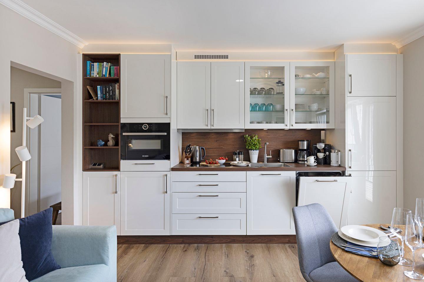 Der offene Wohn-Essbereich ist mit einer hochwertigen Marken-Komfortküche