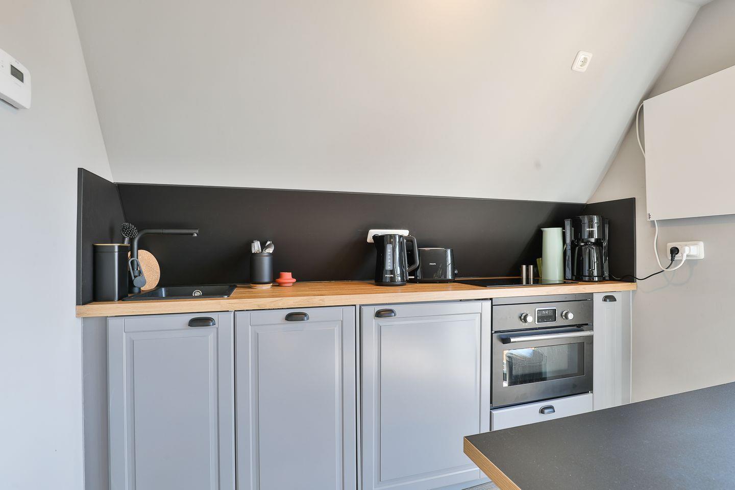 Weiter verfügt der Wohn- und Schlafbereich über die integrierte, gut ausgestattete Küche sowie einen einladenden Essbereich.