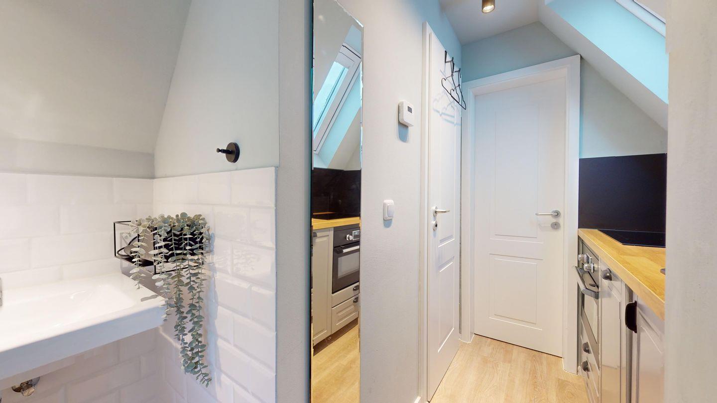 Modernes 1-Raum Appartement mit durchdachtem Konzept und Sauna in strandnaher Lage.