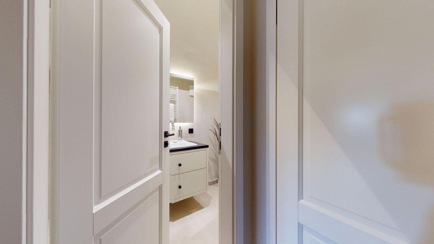 Die modernen Badezimmer bieten höchsten Komfort mit bodengleichen Duschen, einer Badewanne, Haartrocknern und Handtüchern.
