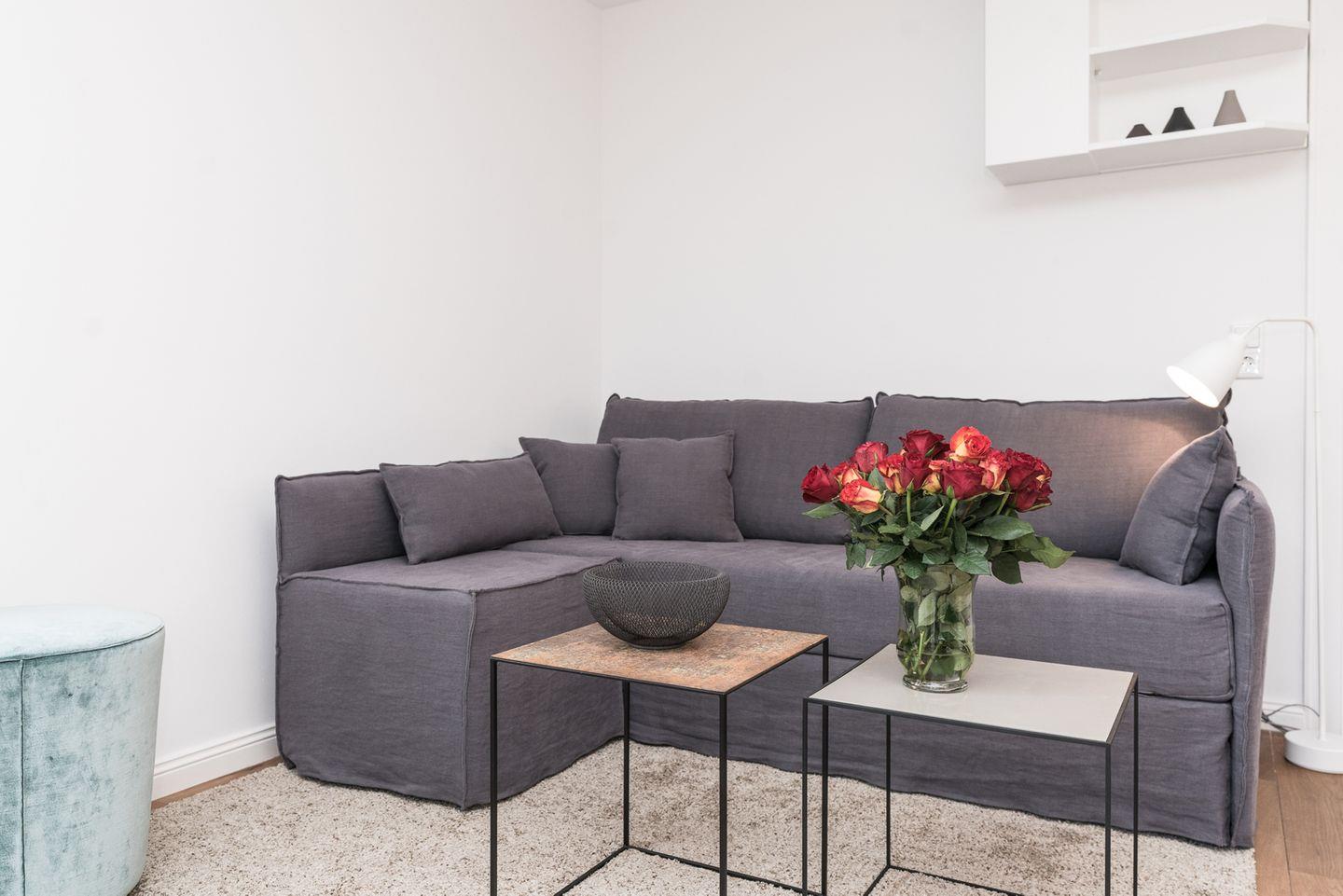Die Ferienwohnung verteilt sich über das Erdgeschoss und Untergeschoss. Die 2-Zimmer-Wohnung wurde frisch renoviert und sehr hochwertig und wunderschön eingerichtet. Im lichtdurchfluteten Wohnzimmer befindet sich eine bequeme Eck-Couch, ein Flachbildfernseher, sowie ein großzügiger Esstisch. Als zusätzliches kleines Highlight verfügt die Ferienwohnung noch über ein modernes Soundsystem, welches Ihnen ermöglicht, überall in der Wohnung Ihre Lieblingslieder zu hören (Handyübertragung)