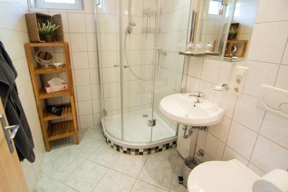 Bad/WC: Dusche; Föhn; Toilette; Toilette; Waschbecken