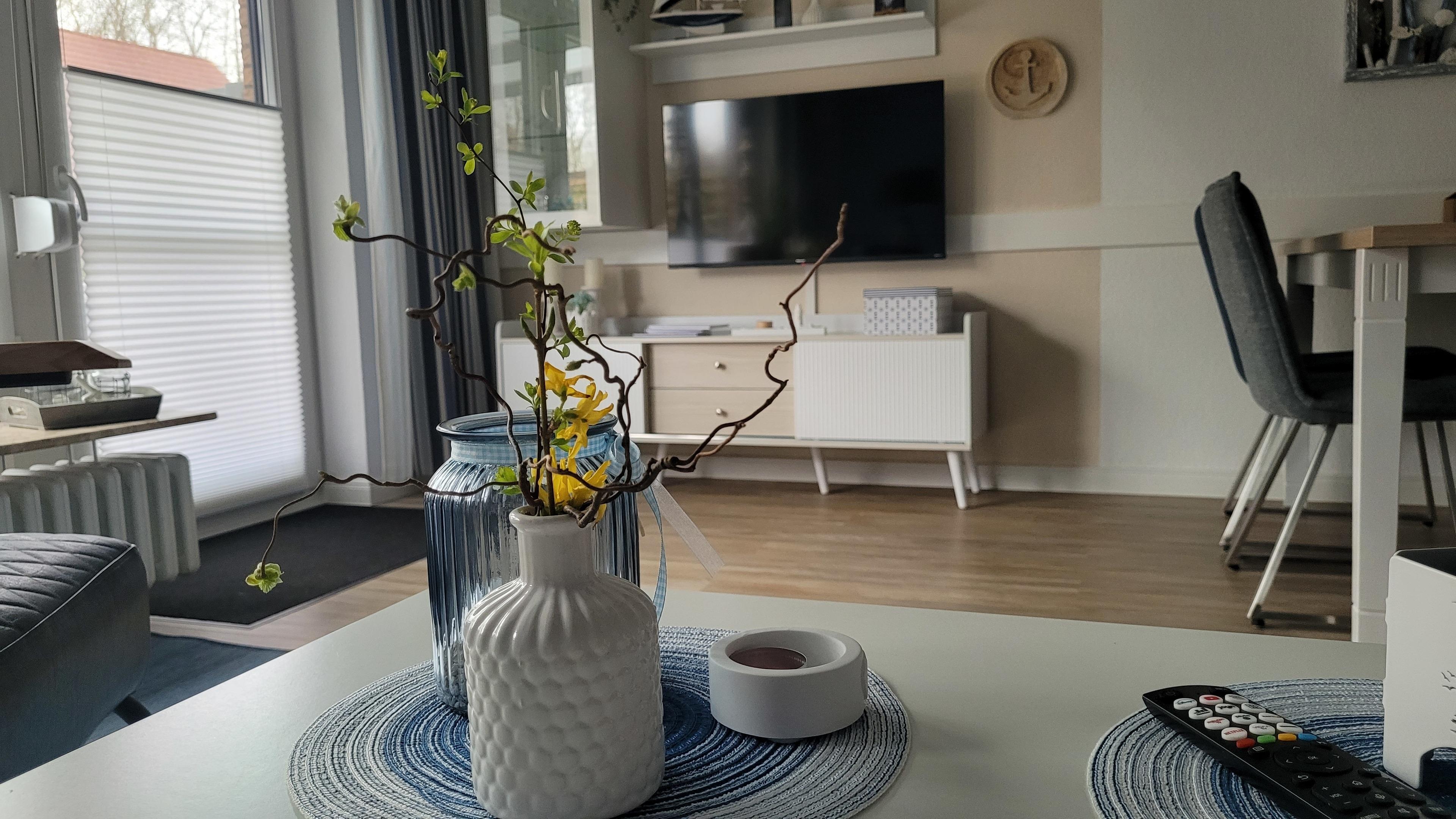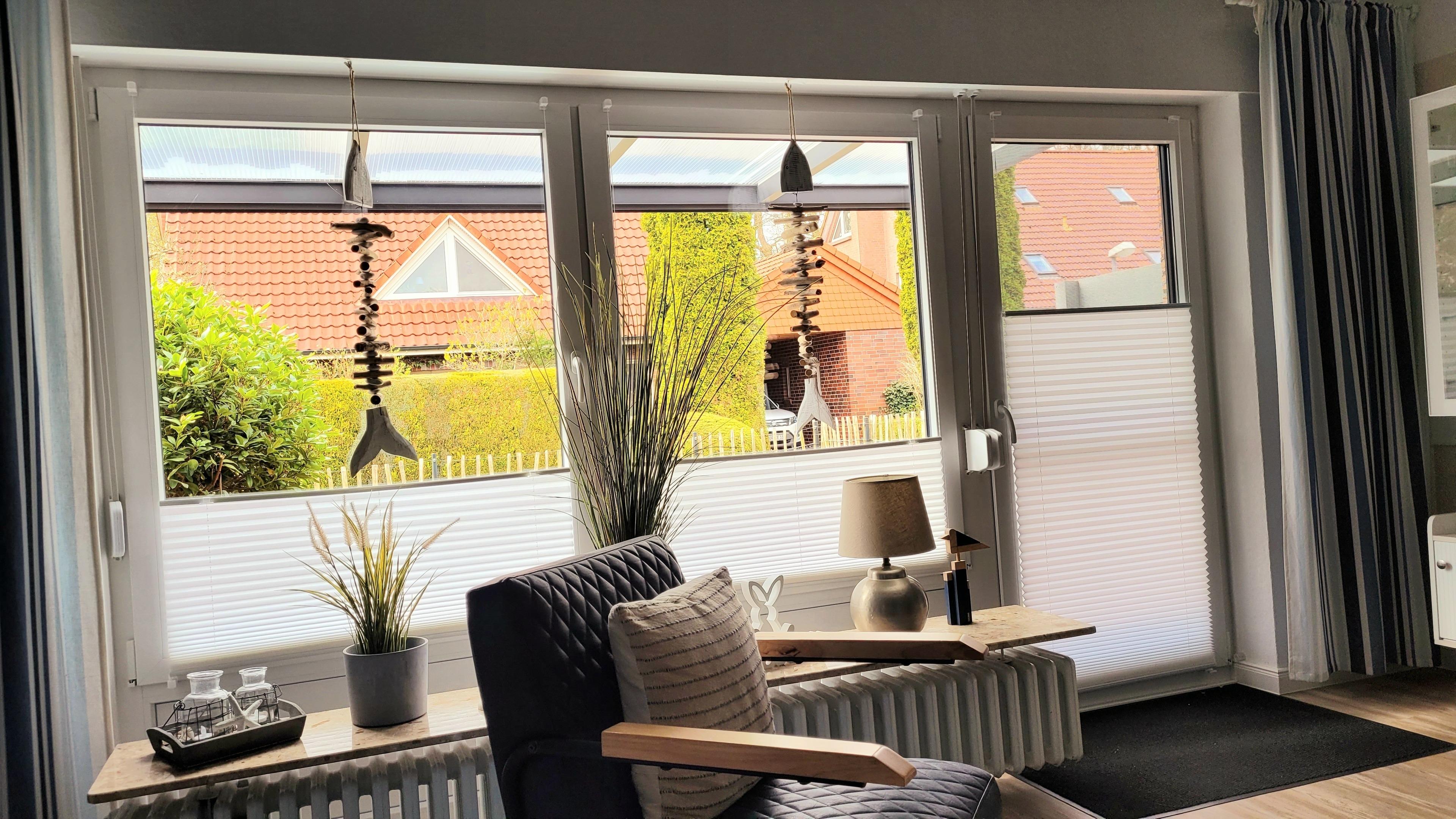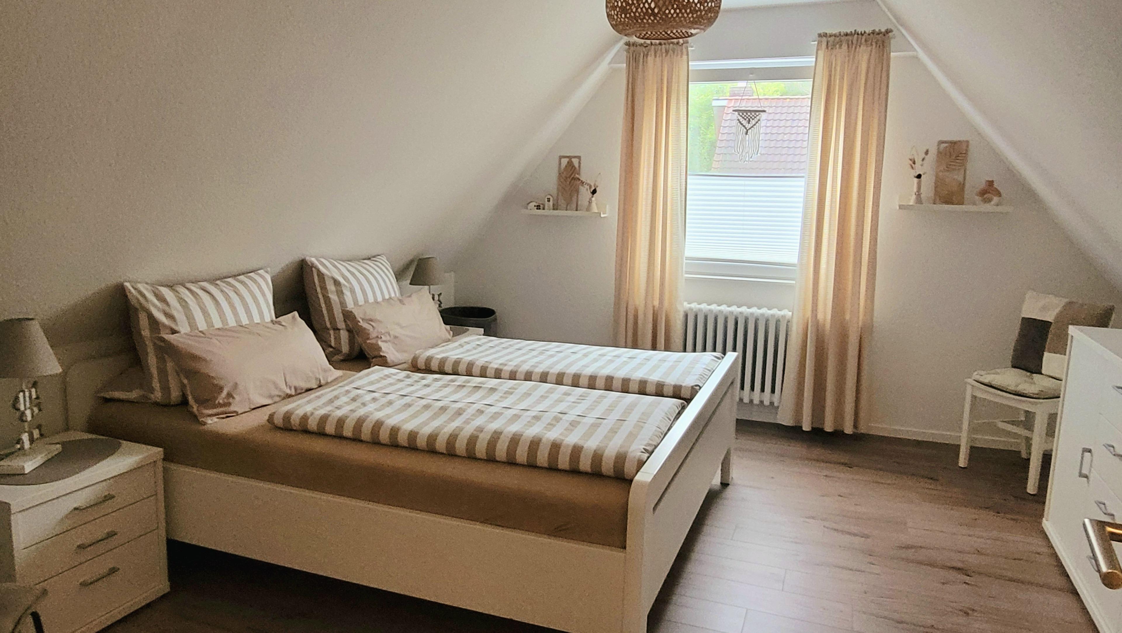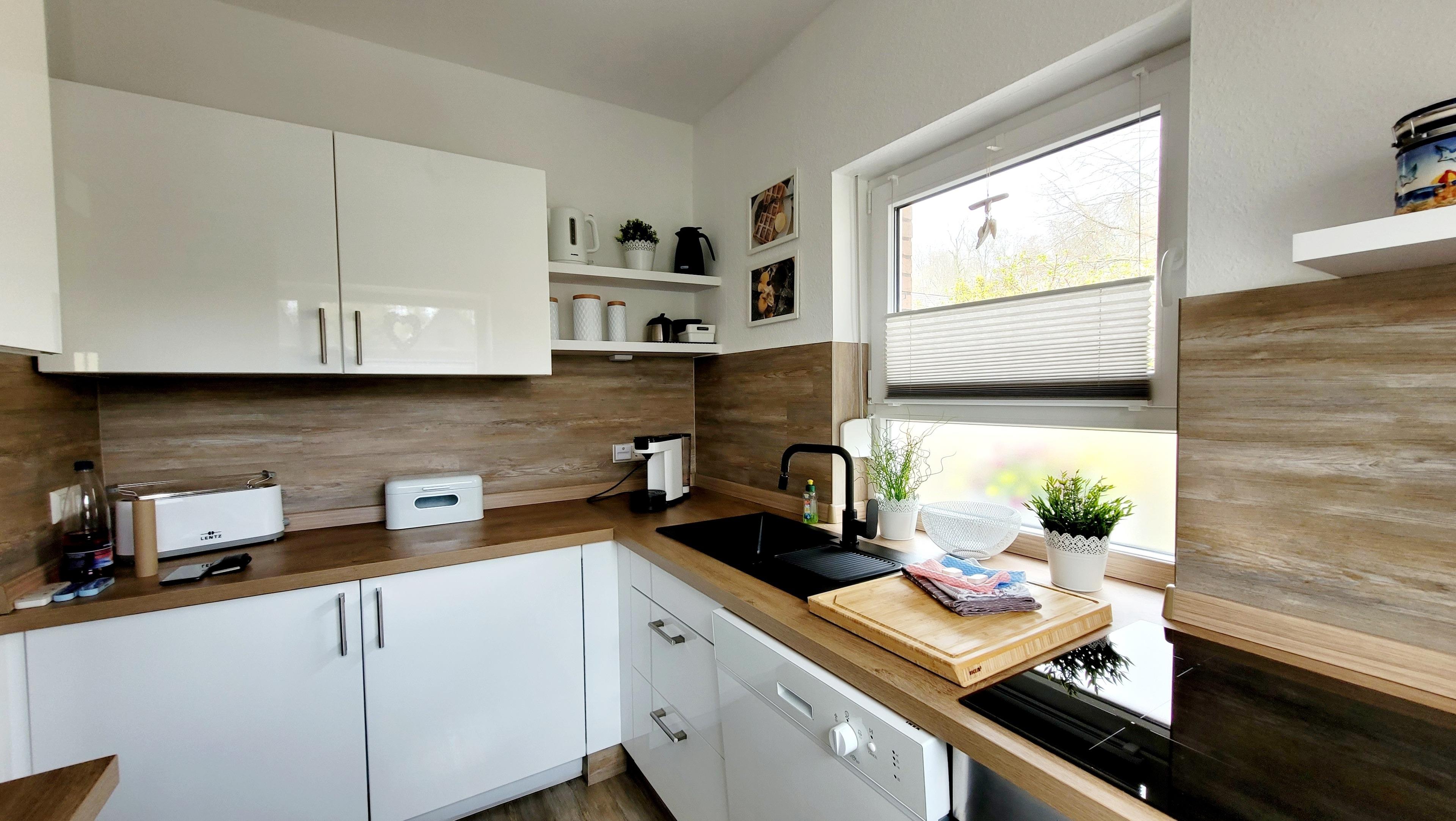 Hausbeschreibung: Im Erdgeschoss befindet sich ein schöner Hausflur mit angrenzendem Treppenhaus. Wenn Sie die Eingangstür betreten haben, geht es gleich links in ein Tageslicht-Duschbad, rechtsseitig kommen Sie in die lichtdurchflutete Küche, geradeaus erreichen Sie das Wohn/Esszimmer mit großer Fensterfront. Über die Terrassentür gelangen Sie auf die gepflasterte Terrasse mit Überdachung. Ein kleiner umzäunter Garten wurde neu angelegt. Vom Treppenhaus gelangen Sie in die beiden oberen Schlafzimmer. Das größere verfügt über ein Doppelbett 180 x 200 cm (inkl. Topper) bietet zusätzlich Platz für ein Babyreisebett oder eine Klapp-Gästematratze (beides kostenlos für Sie vorhanden). Das zweite Schlafzimmer ist mit zwei Einzelbetten 90 x 200 cm ausgestattet, selbstverständlich können Sie die Betten auch aneinander stellen oder umgekehrt. Jedes Schlafzimmer ist mit einem offenen Kniestock-Kleiderschrank und einer Schubladenkommode ausgestattet, ebenso mit einem Smart TV-Gerät. Im oberen Flur wurde ein Einbauschrank eingebaut in dem Sie den Hochstuhl, das Baby-Reisebett, die Klappmatratze sowie die dazugehörigen Bettdecken, Kissen und Spielsachen vorfinden. Wir bieten Ihnen mit unserem modern eingerichteten Ferienhaus ein Wohlfühlambiente mit einem wunderbaren Ausgangspunkt zu Ihren Unternehmungen.