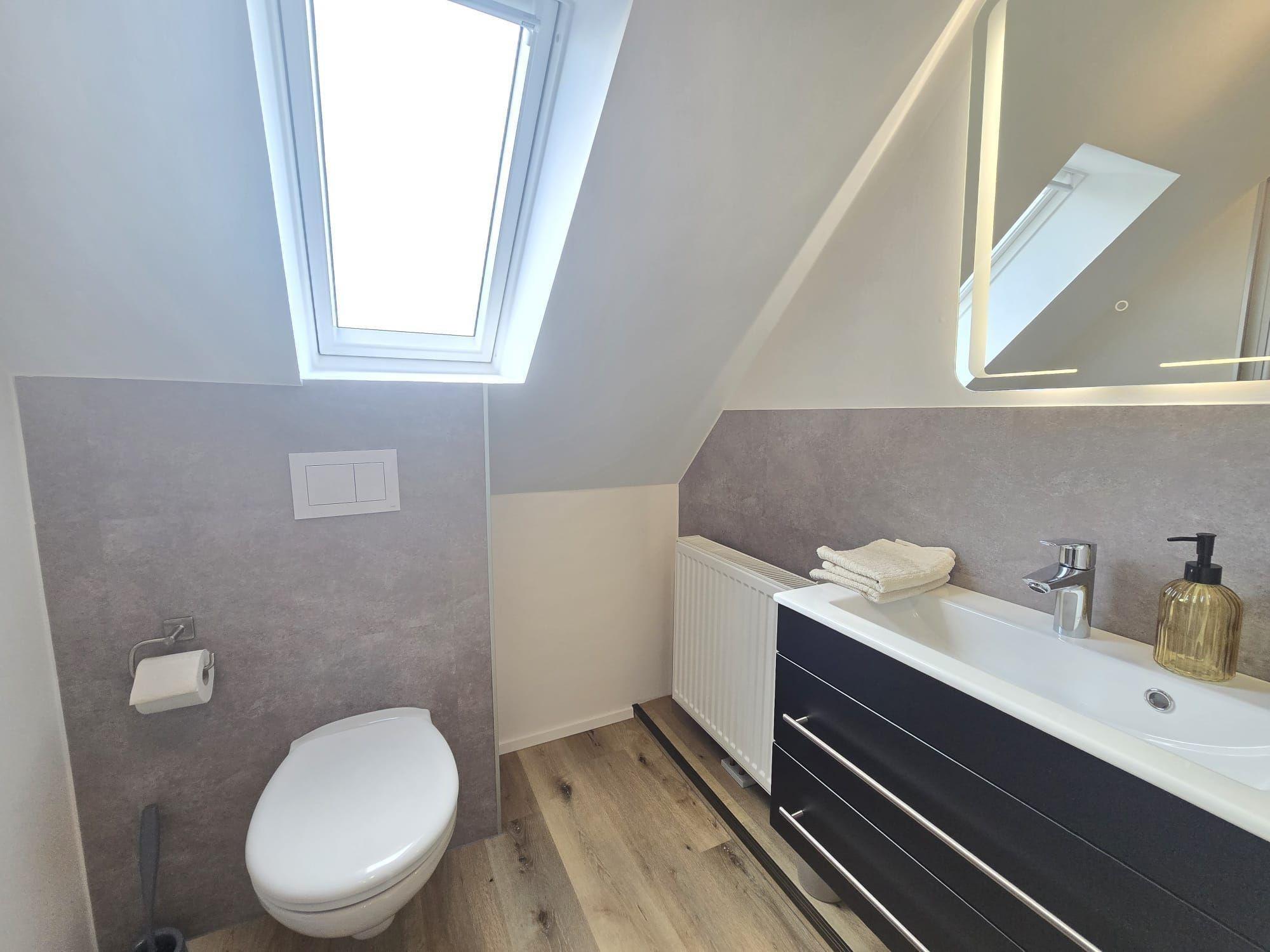 Die Ferienwohnung bietet eine moderne und allergikergeeignete Ausstattung, ideal für einen erholsamen Aufenthalt. Im Schlafzimmer befindet sich ein komfortables Doppelbett, das zum Entspannen einlädt. Die offene Küche ist mit einem Elektro-/Gasherd, einem Kühlschrank, einer Kaffeemaschine, einem Toaster und einem Wasserkocher ausgestattet. Ein Esstisch sowie ein Kinderhochstuhl runden die Küche ab. Das Badezimmer verfügt über eine bodengleiche Dusche, ein Fenster sowie einen Kosmetikspiegel, und es werden Startersets für Seife, Duschgel, Shampoo und Toilettenpapier bereitgestellt. WLAN ist vorhanden und ermöglicht ungestörtes Arbeiten oder Surfen. Zusätzliche Annehmlichkeiten wie ein TV, ein Haartrockner und ein Parkplatz sorgen für Komfort. Die Wohnung ist einladend und perfekt für Familien oder Paare, die einen ruhigen Rückzugsort suchen. Reinigungsmittel sowie Geschirrtücher sind ebenfalls vorhanden, um den Aufenthalt so angenehm wie möglich zu gestalten.