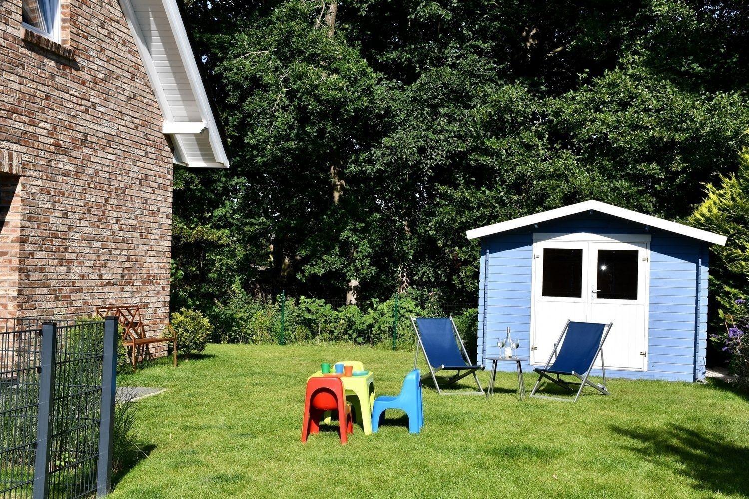 Modernes Ferienhaus mit Sauna, Garten und Terrasse in ruhiger Lage in Hage für erholsamen Familienurlaub.