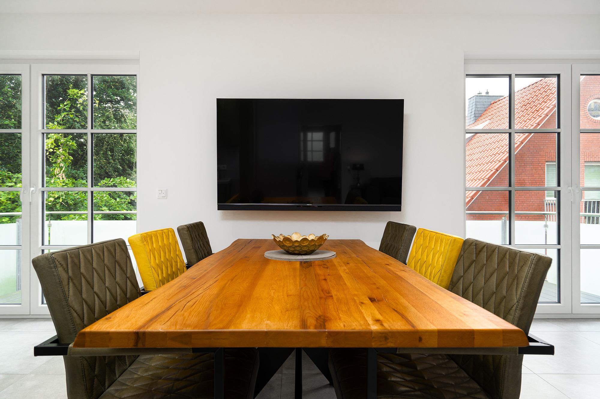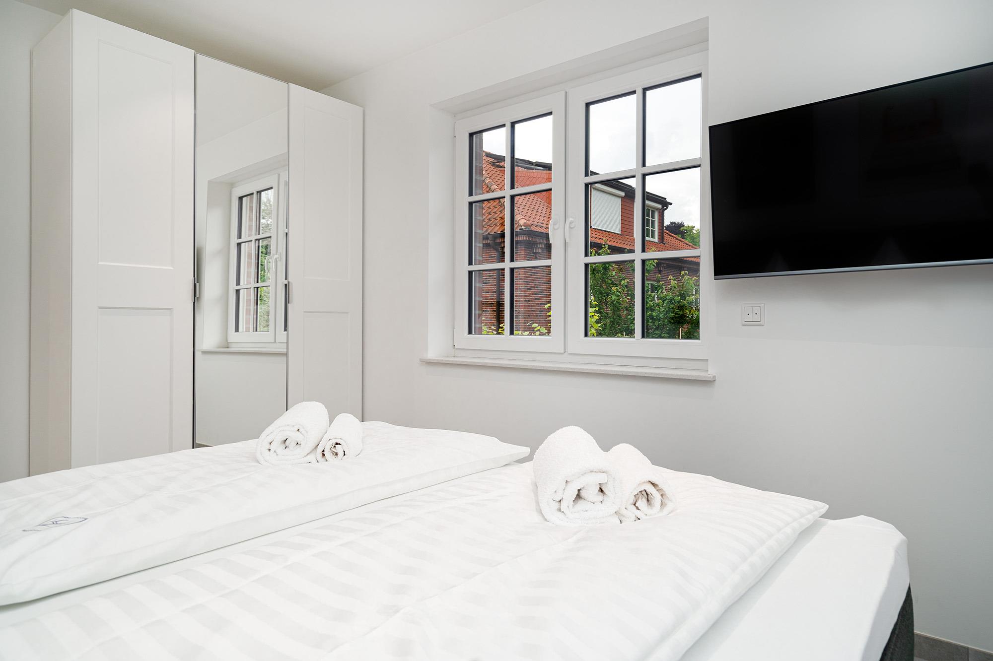 Unsere neue Wohnung "Mühlenblick 3" befindet sich im Obergeschoss und bietet auf etwa 90qm einen gemütlichen und hellen Wohn-Ess-Bereich mit voll ausgestatteter Küche, Sofalandschaft und großem Esstisch sowie zwei geräumige Schlafzimmer mit bequemen Boxspringbetten und ausreichend Ablagefläche. Neben dem Tageslichtbad mit ebenerdiger Dusche finden Sie außerdem ein Gäste-WC, was die Wohnung zusätzlich sehr komfortabel macht. Die gemeinschaftliche Bibliothek im Hausflur bietet neben vielen Büchern auch einige Spiele für gesellige Abende. Durch die zentrale Lage im Luftkurort Hage erreichen Sie die bekannte Mühle, die Burg Berum sowie das Schloss Nordeck nach nur wenigen hundert Meter - vom Balkon aus haben Sie einen tollen Blick auf die bekannte Mühle. Selbstverständlich stehen Ihnen ein eigener Parkplatz am Haus sowie ein Abstellraum für Fahrräder zur Verfügung.