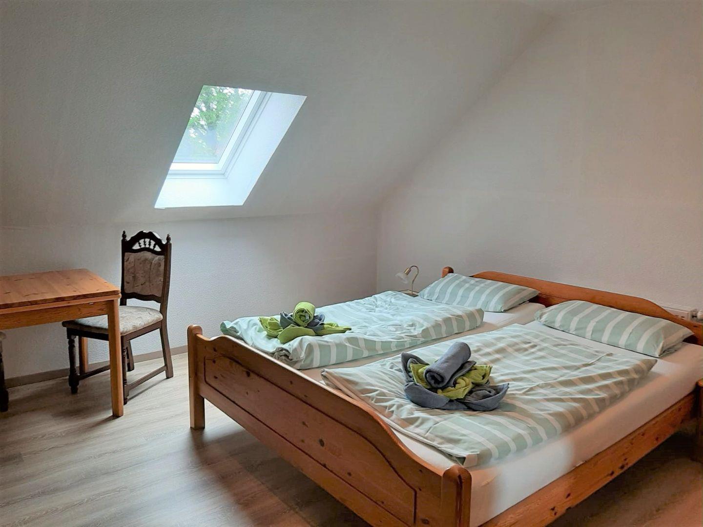 Die Wohnung verfügt über 3 Schlafzimmer – 2 im Erdgeschoss (eins mit einem Doppelbett (180×200) sowie eina mit einem Einzelbett (90×200)) . Ein weiteres Schlafzimmer steht im Obergeschoss im einem Doppelbett (180x200) zur Verfügung.