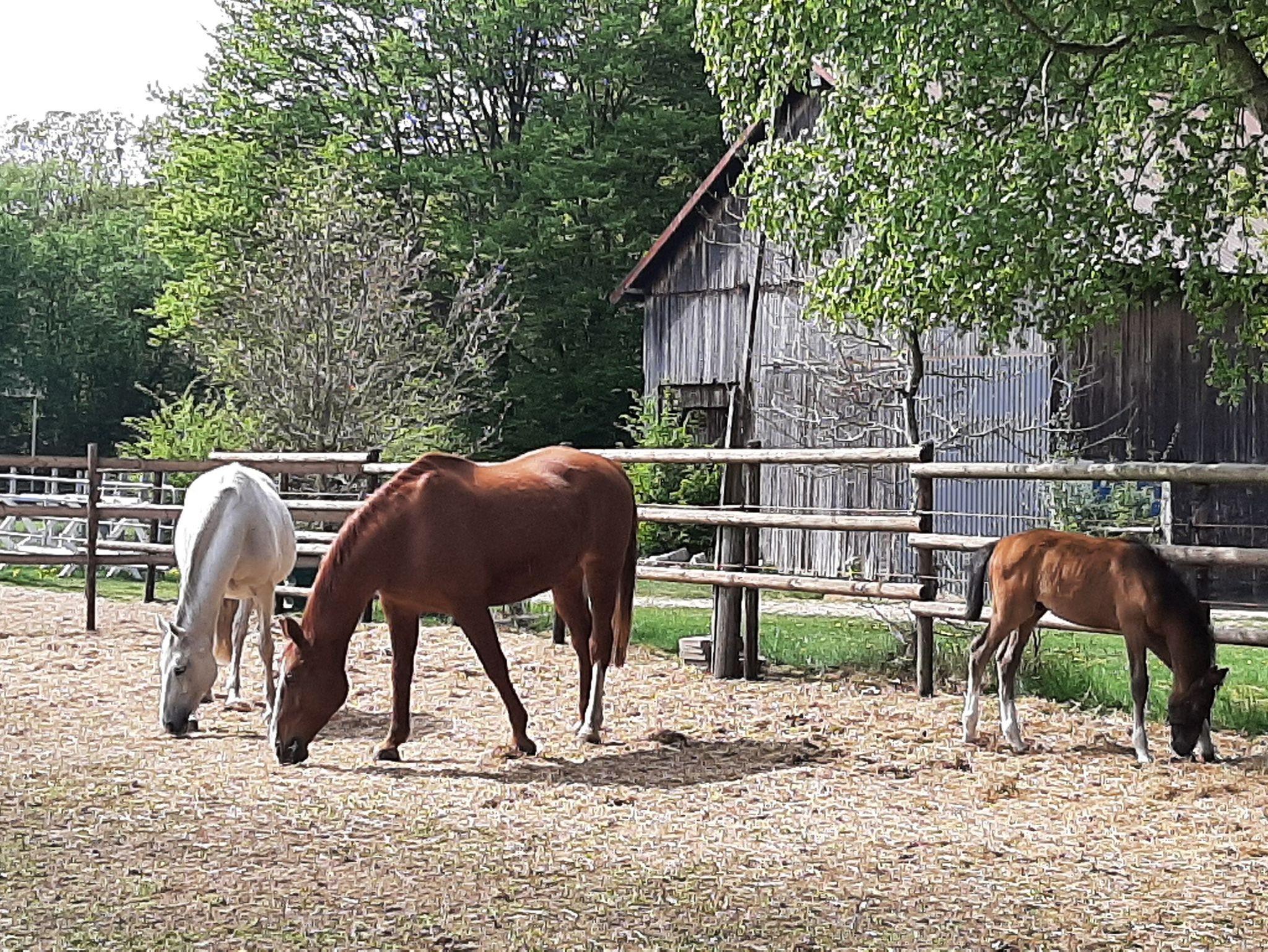 Ferienhaus im Landhaus-Stil mit Terasse in ruhiger ländlicher Lage im großen Garten eines ehemaligen Bauernhofs in Einzellage umgeben von großen Bäumen und Pferdekoppeln. Großes Waldgebiet in ca 1 KM. Wohnung im Erdgeschoß. Wohnfläche ca. 90 qm, großes Wohnzimmer, 1 Schlafzimmer mit Doppelbett, 1 Schlafzimmer mit Einzelbett, zusätzliches Kinderbett möglich. Küche, Bad mit Dusche. Zentralheizung und Kaminofen. Carport, Fahrradunterstellung.