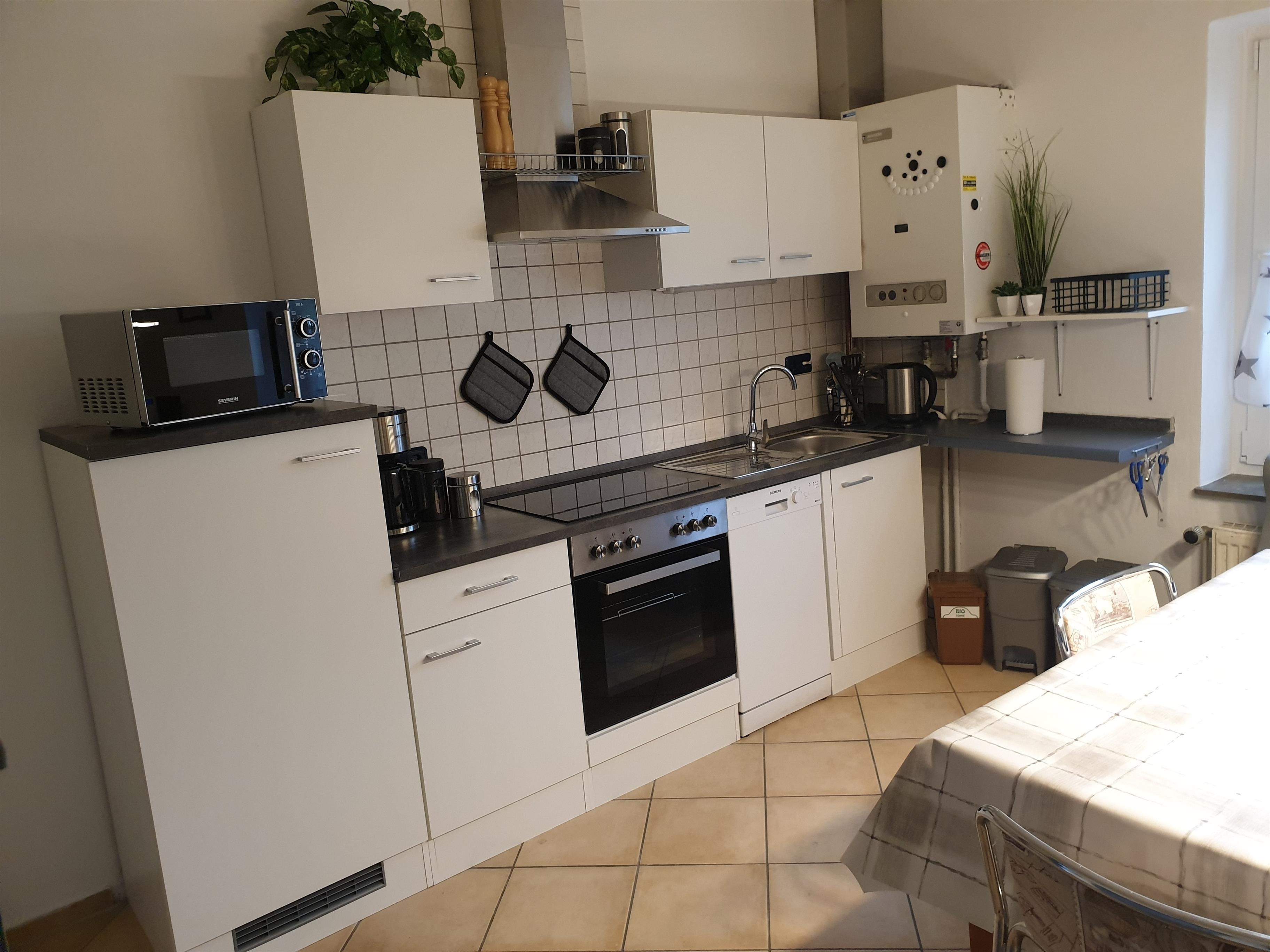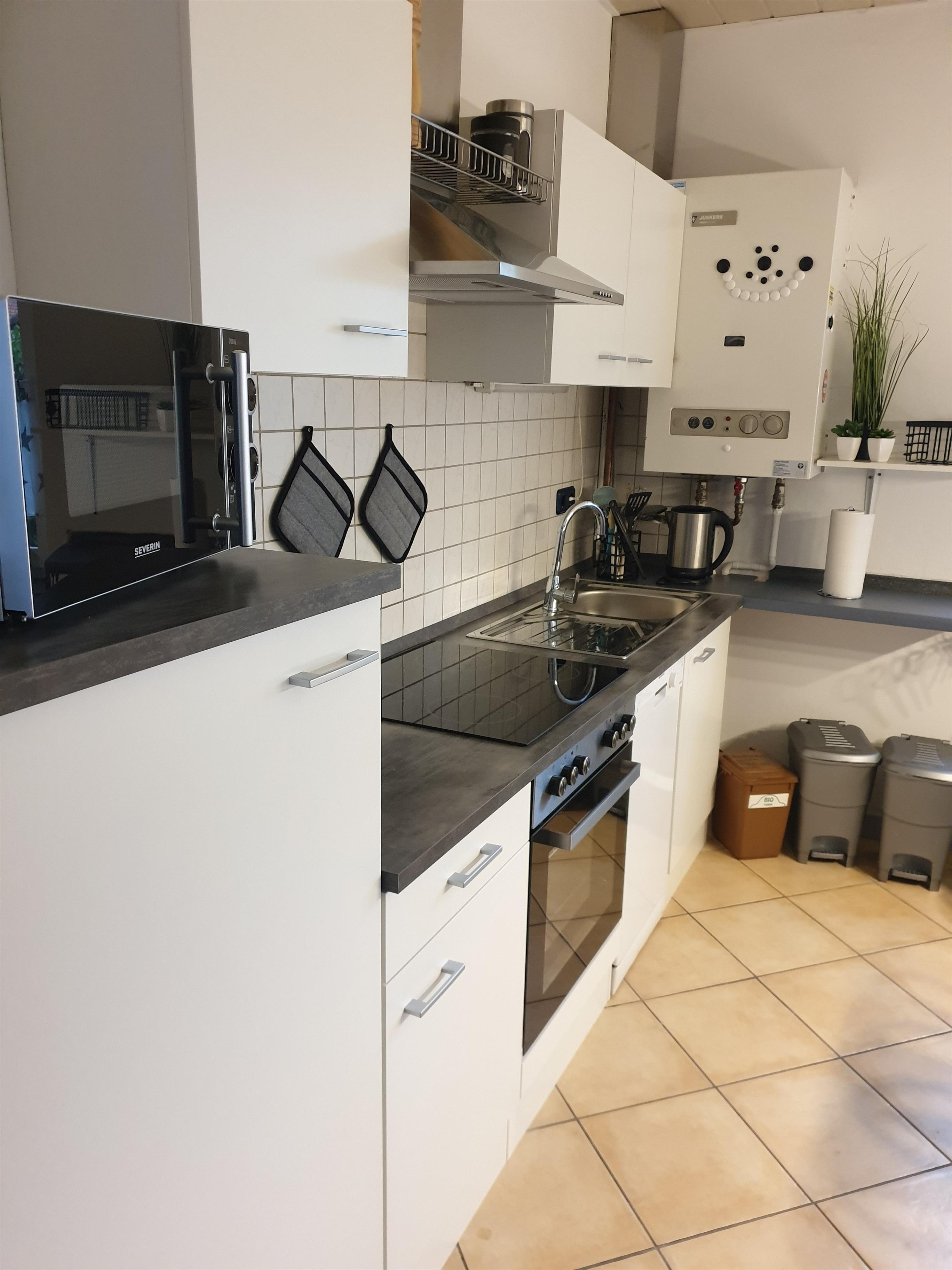 Im Untergeschoss befindet sich das geräumige Wohnzimmer mit Fernseher, DVD Player, Couch und Leseecke. Die Küche ist mit einer Essecke, sowie allen gängigen Haushaltsgeräten (Spülmaschine, Backofen, Mikrowelle, Toast, etc.) ausgestattet.