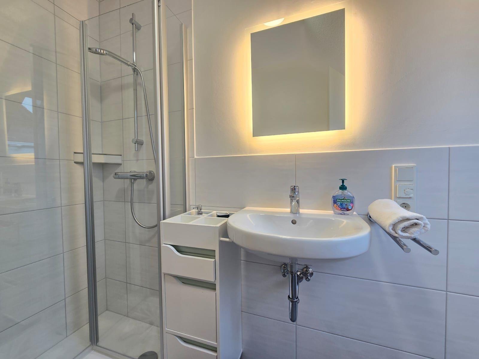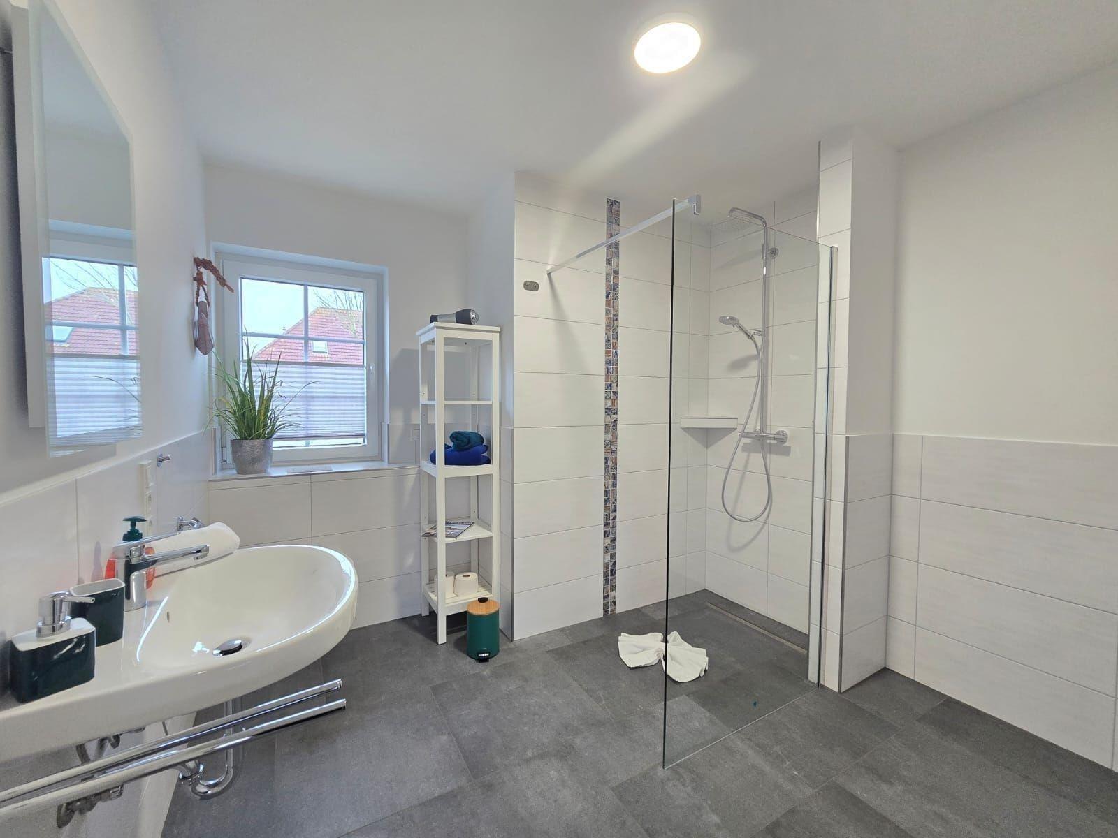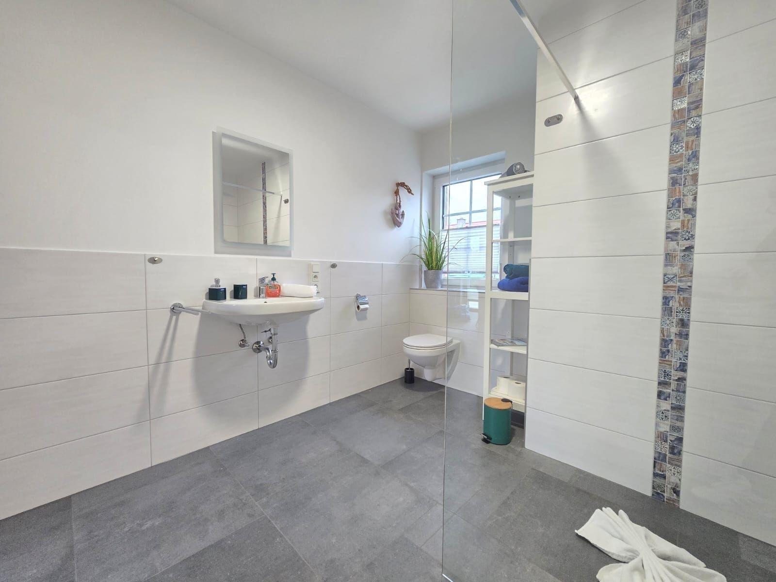 Das barrierefreie, seniorengerechte Bad mit bodengleicher Dusche und Fenster sorgt für zusätzlichen Komfort. Internet mit WLAN, ein Parkplatz, sowie eine Waschmaschine und ein Bügeleisen runden die Ausstattung ab. Für die kleinen Gäste gibt es einen Hochstuhl und Kinderspielzeug. Ein Starterset mit Seife und Duschgel sorgt für einen entspannten Einstieg in den Urlaub. Diese gut durchdachte Ferienwohnung ist der perfekte Rückzugsort für jeden.