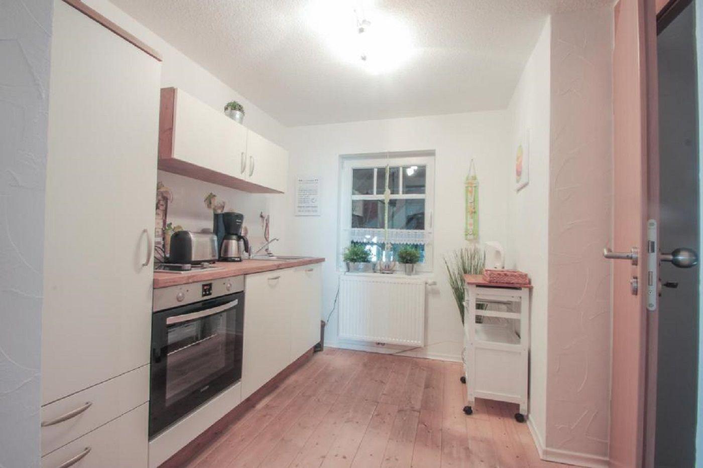 Kochen: 2-Plattenherd; Backofen; Gefrierfach; Kaffeemaschine; Kühlschrank; Mikrowelle; Spülmaschine; Toaster; Wasserkocher