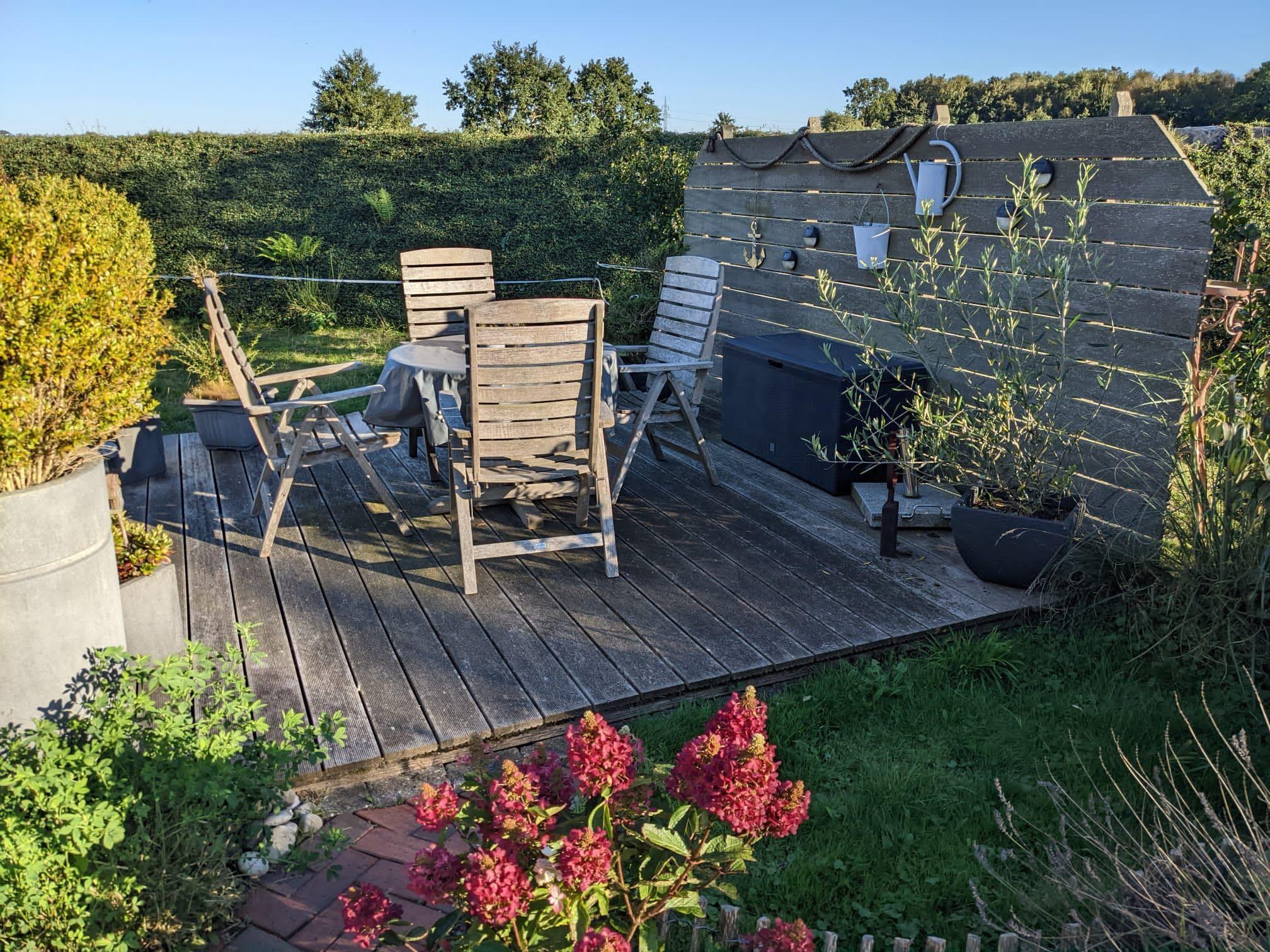 Ein Fahrradweg liegt direkt von der Haustür. Es gibt viele sonnige Plätzchen zum Verweilen in unserem Bauerngarten.